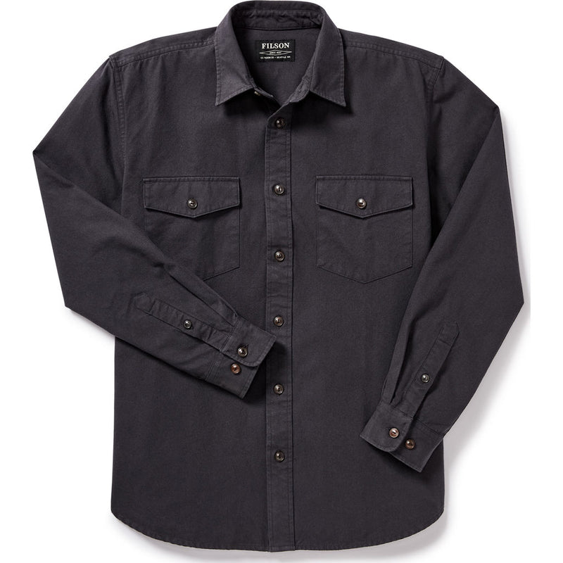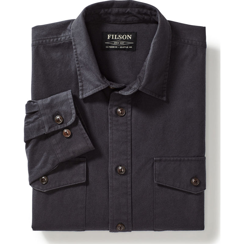 Rugged and comfortable for work or everyday wear. Filson's Kodiak Chamois button up shirt in Navy is made with 8.5 oz cotton chamois fabric that is densely woven for durability. The interior is napped with a soft feel for warmth without an additional layer for a lightweight throughout the day. Outfitted with a button front and spread collar for a day to night outfit.