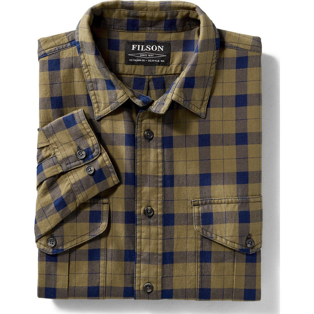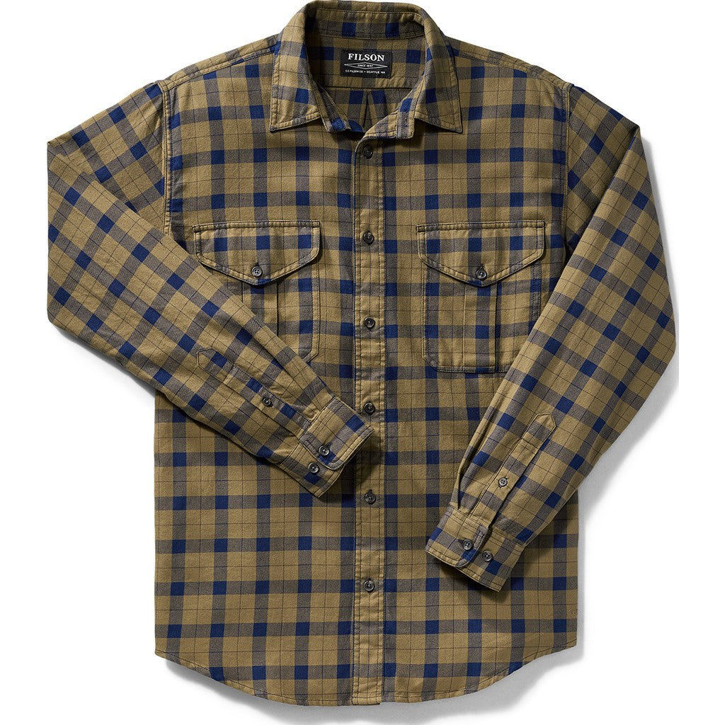 The Alaskan Guide Shirt is a Filson legend, and it's now made with lightweight cotton flannel that provides breathability, wind resistance, and comfort for strenuous activity. The back is pleated to provide flexibility and mobility, making this shirt perfect for a hard day's work. The cuffs are adjustable and the chest pockets expandable, a great place to hold tools or daily essentials. This bronze and blue plaid shirt is constructed to thrive under stress and pressure, and to stay with you through the years.