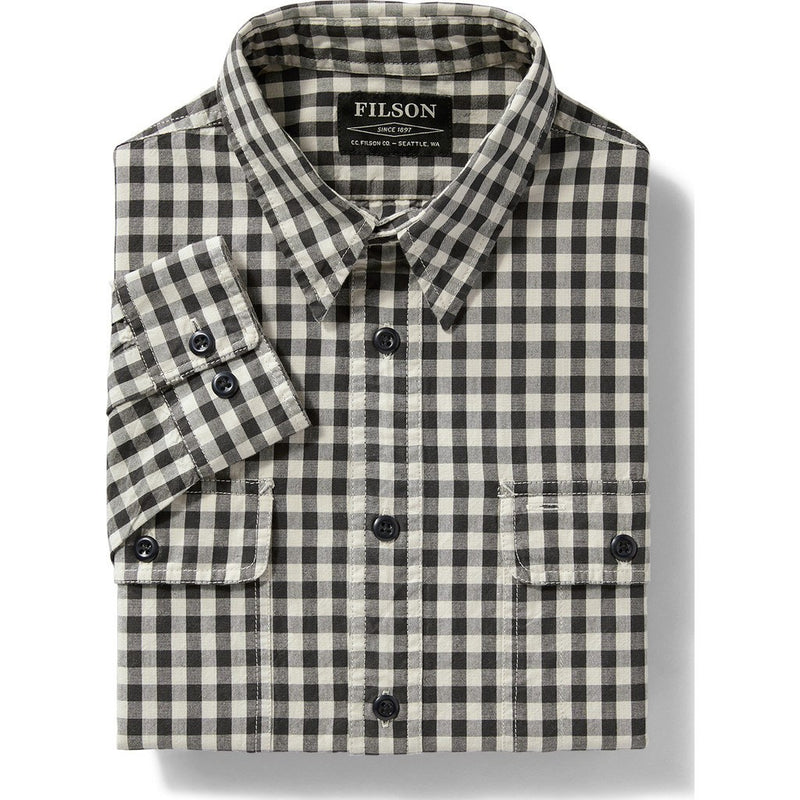 Filson's Lightweight Kitsap Work Shirt in black and tan checkered is crafted from lightweight, breathable cotton that has been pre-washed to maximize comfort and provide that vintage look. With military-grade melamine buttons, adjustable cuffs, and chest pockets, this is the most comfortable and versatile work shirt, you'll want one in every color.