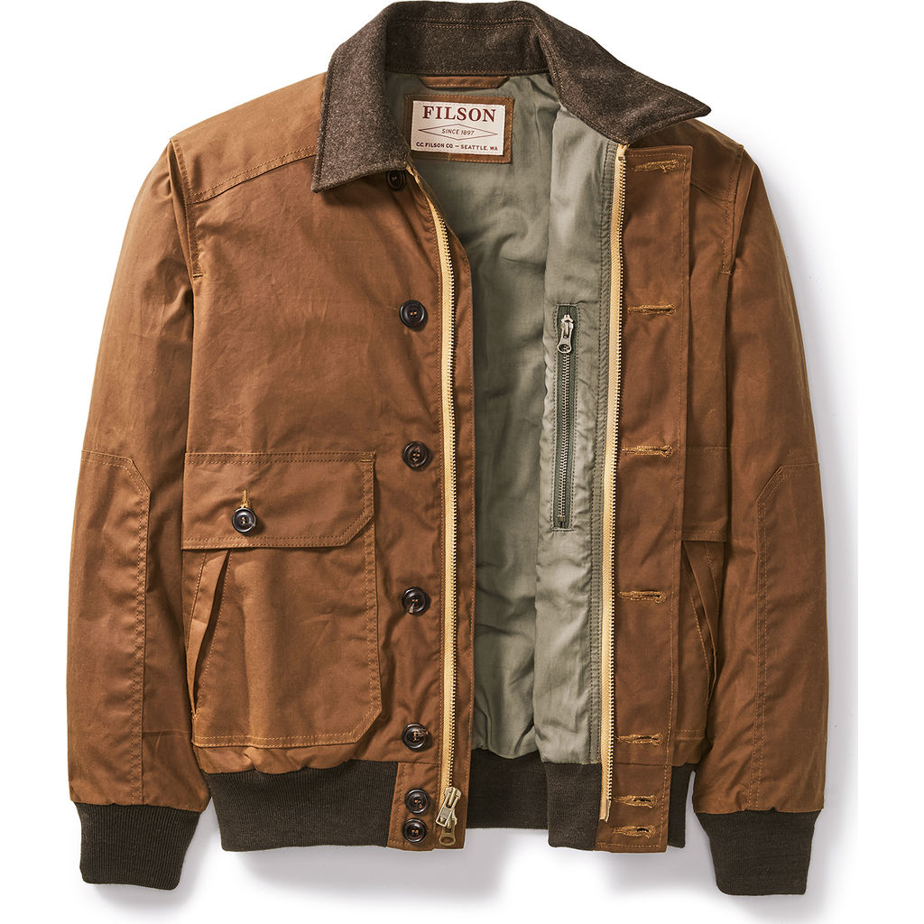 The Lightweight Ranger Bomber from Filson boasts vintage styling and durable construction. Crafted from a water and wind resistant canvas with Filson's signature oil finish, this coat makes use of a traditional bomber-style cut and a Mackinaw Wool collar to embody its timeless aesthetic.