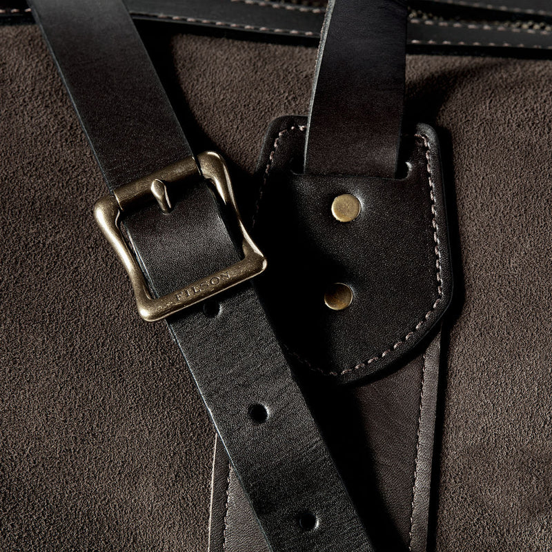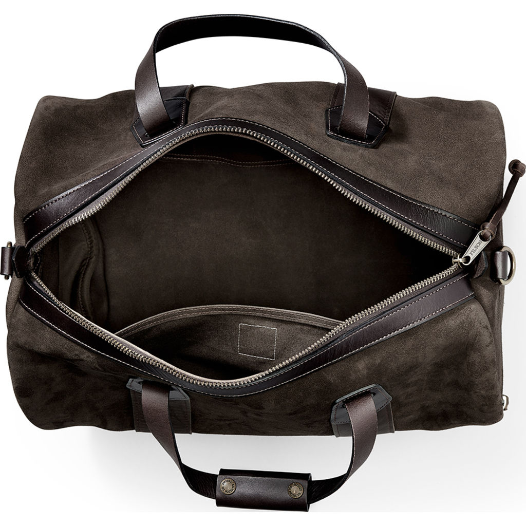 The Dark Tabacco Medium Rugged Suede Duffle from Filson is stylish, durable, and waterproof for a trusty companion throughout the year. Made with boot-grade Rugged Suede that's tanned in Chicago with their signature Bridle Leather handles tanned in Pennsylvania. Lastly, the finish product is crafted in Filson's factory in Seattle. This nearly indestructible duffle will last for generations and through many raining seasons.