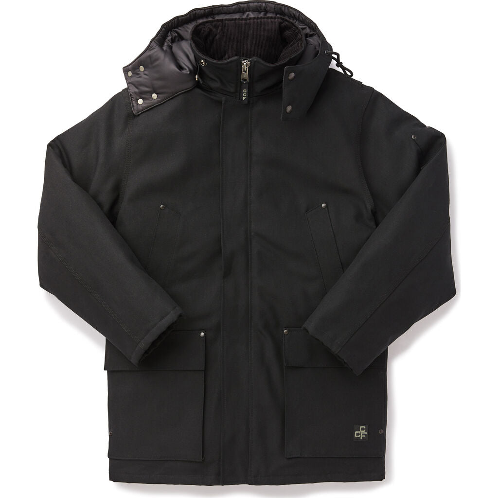 Filson C.C.F. Utility Down Parka combines the durability of cotton duck fabric with the warmth of down insulation for a coat that shrugs off abrasion and frigid temperatures. This outfitted with a corduroy-lined collar and insulated detachable hood.