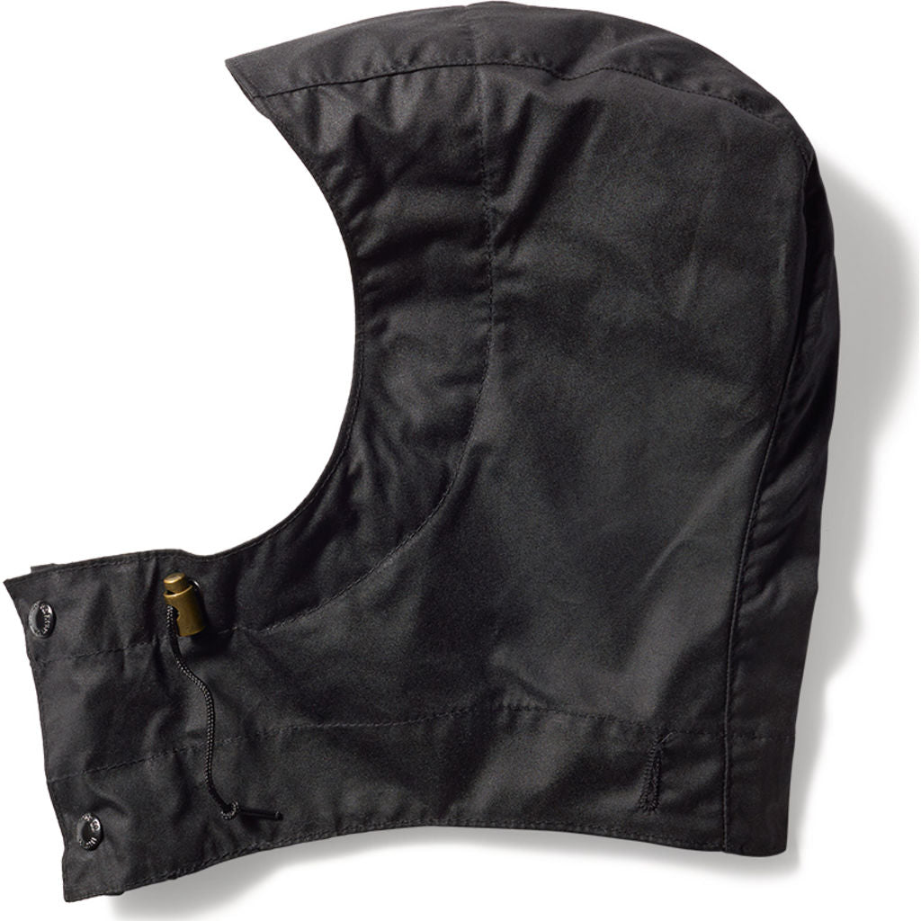 Our water-repellent hood with attached rain-diverting visor buttons into select Filson Cover Cloth coats and jackets. Two-snap closure protects your neck from wind and driving rain. The wide cut allows for an uncompromised field of vision .