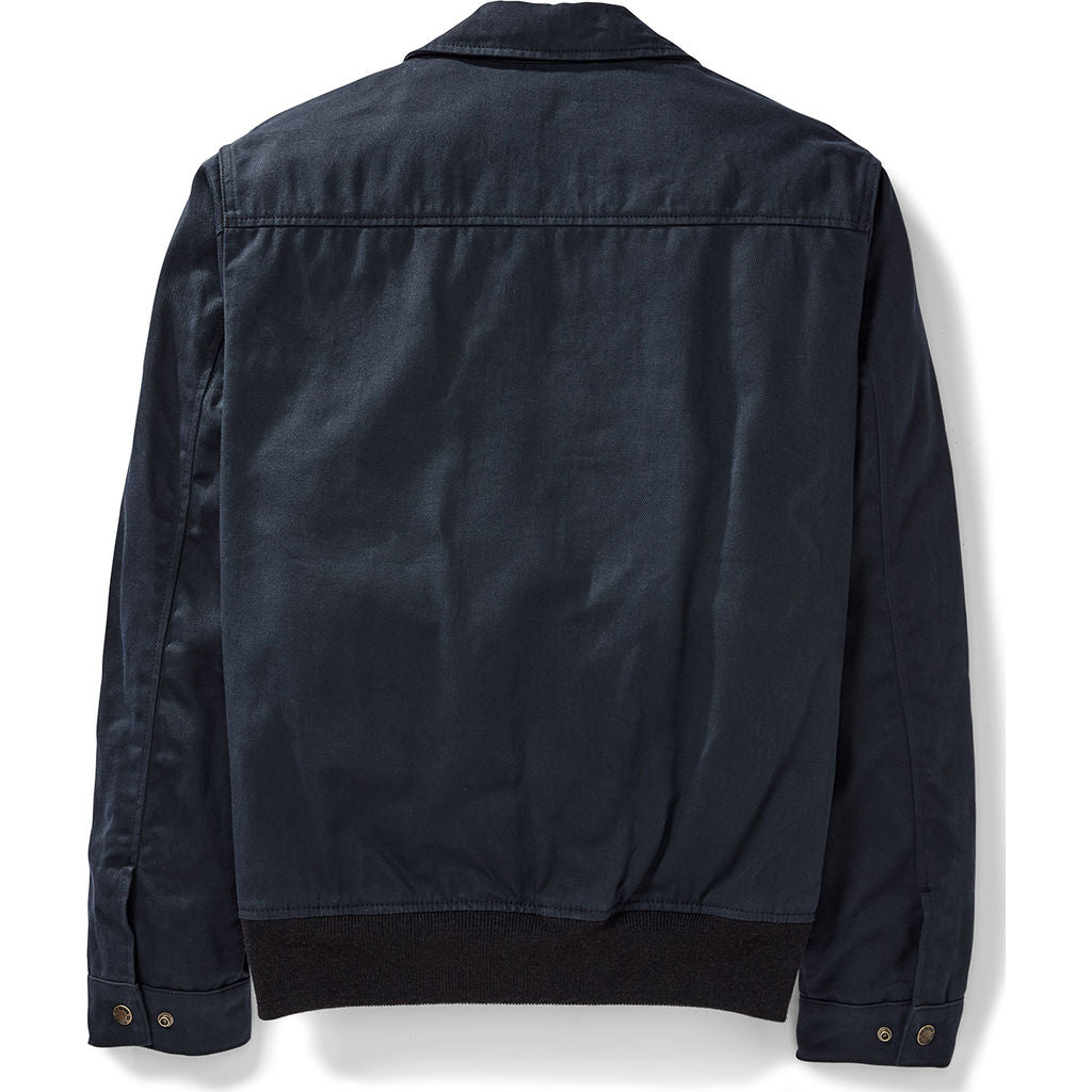The Dusk Navy Mens Dry Wax Work Jacket from Filson is exactly what you need. It is a hip length work jacket that is cut to give you the mobility and flexibility you need. Made with a rugged, water-repellent dry-waxed shell and lined with our Cover Cloth. Featuring handwarmer pockets so you will be prepared for whatever weather comes your way. Made in the USA.