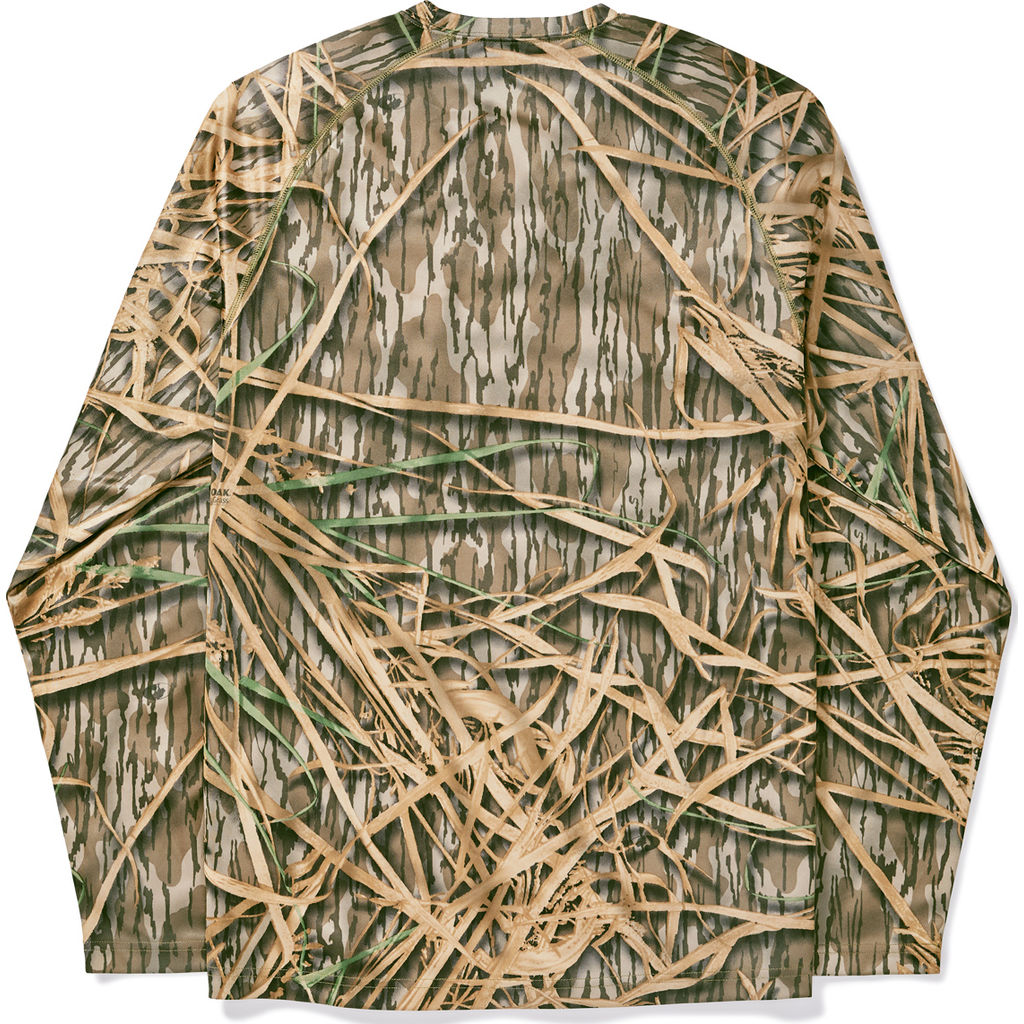 Mossy Oak® and Filson have come together to give you the Mens Long Sleeve Barrier t shirt. This long sleeve shirt is an ideal choice for warm early-season hunts. Made of a double-knit polyester that's highly breathable, quick-drying and moisture-wicking. Odor-fighting treatment keeps you feeling fresh and comfortable throughout the day.