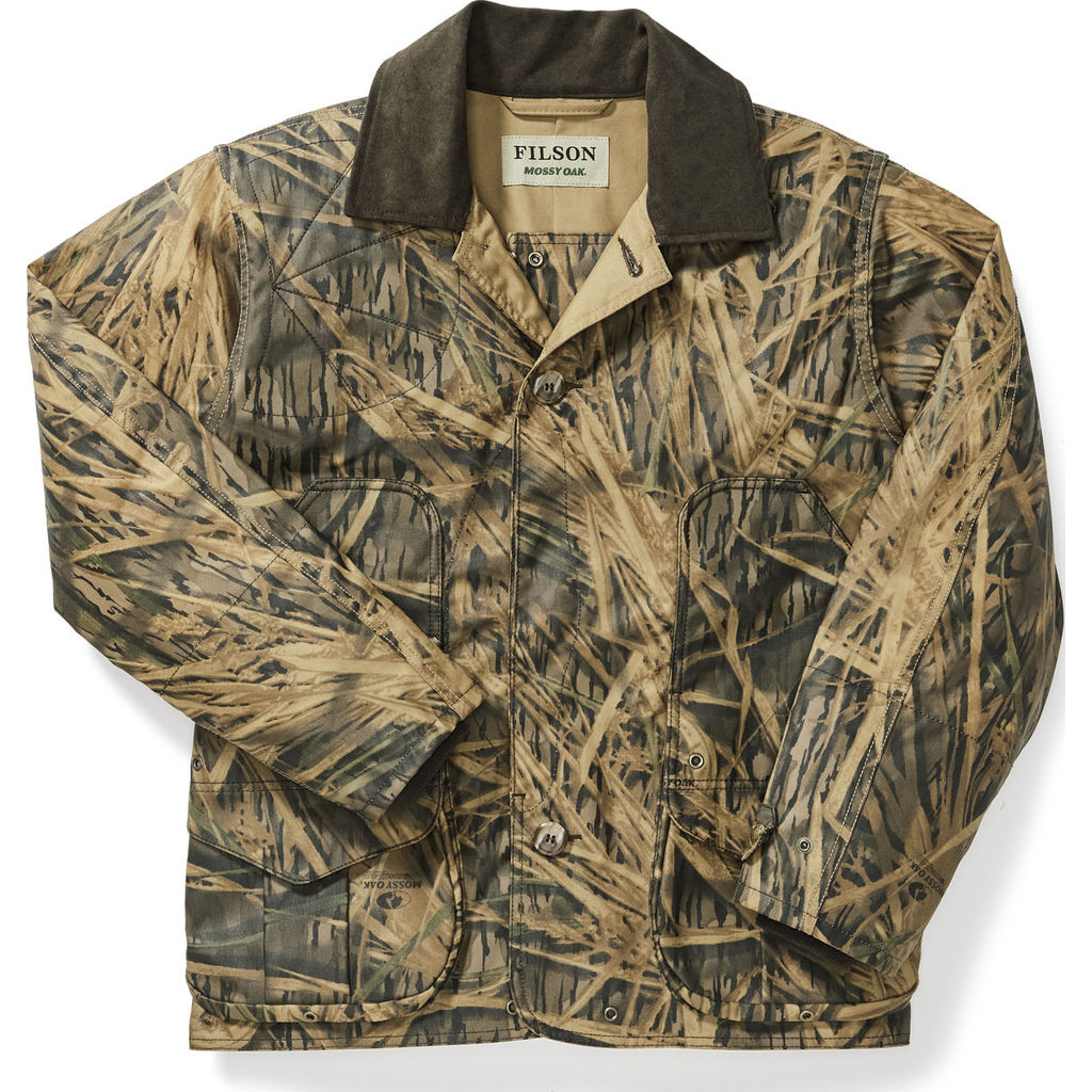 The Shelter Waterfowl Upland Coat is the ideal hunting coat, as it repels water, is durable, and has front-load game pockets that are blood-proof. The design of the jacket allows for a full range of motion while hunting, while the cuffs are fitted to retain body heat. A sueded, Moleskin-lined collar provides extra warmth and insulation against wind and rain. Available in Dark Tan and Mossy Oak® Shadow Grass®.