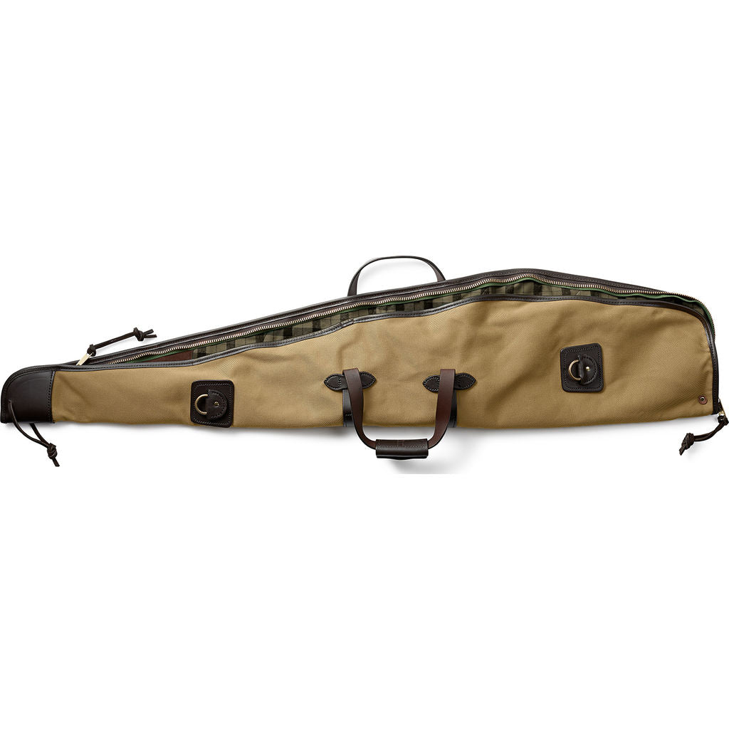 Filson's Scoped 50" Gun Case is constructed out of abrasion-resistant Rugged Twill fabric and has a deerskin-lined nose for added protection. It's fully lined with cotton flannel, to protect your firearm against scratches and wick moisture away to protect it from rusting. The solid brass zipper closure custom cut at Filson runs 3/4 of the length of the case, for full access into the interior.An ideal case for when you're out in the field or out hunting.