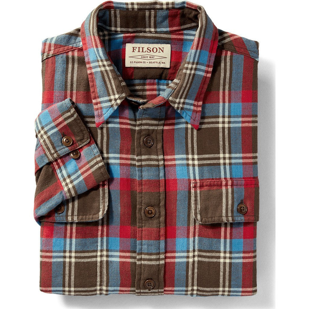 Filson's Scout Shirt in brown/blue/cream plaid is crafted from lightweight, breathable, 4-oz cotton twill to make the ideal long-sleeve work shirt. Layer it under your favorite Filson jacket or vest or roll up the sleeves in the spring. With shoulder pleats, adjustable cuffs, and chip-resistant Corozo buttons, this is one shirt you can and want to wear all year long.