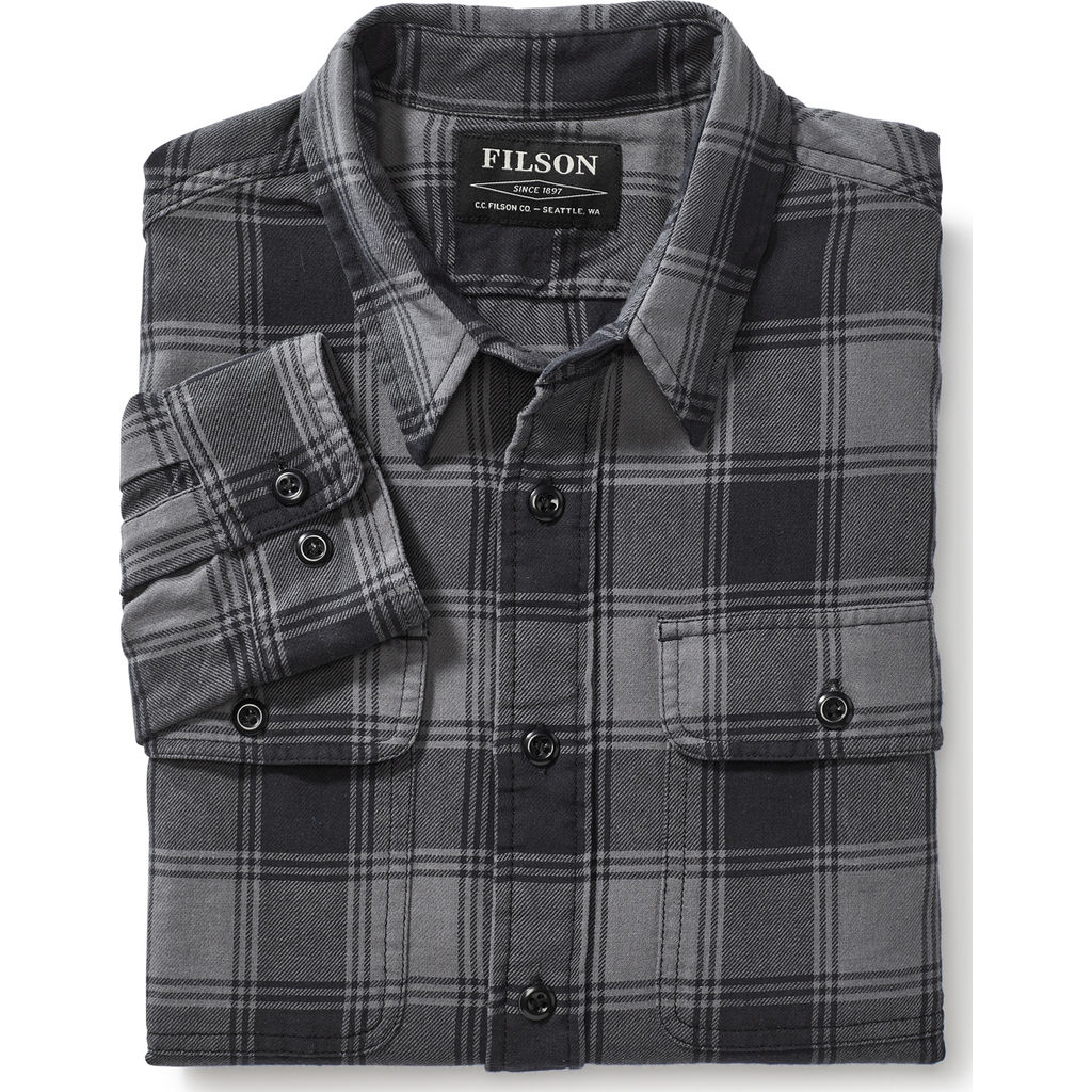 A timeless choice for work or everyday wear, the gray and black Scout Shirt from Filson is a long sleeve garment that conforms to you with a button-down front and adjustable cuffs. Crafted using a lightweight cotton twill and pleated shoulders, this plaid shirt delivers a soft, comfortable feel in addition to full range motion.