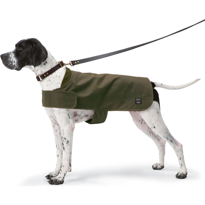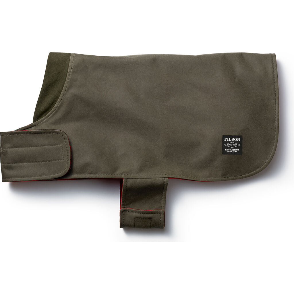 Filson's reversible, water-repellent dog coat is made for comfortable insulation even when wet. A double-layer of sueded Moleskin in the collar keeps your pet protected and comfortable!