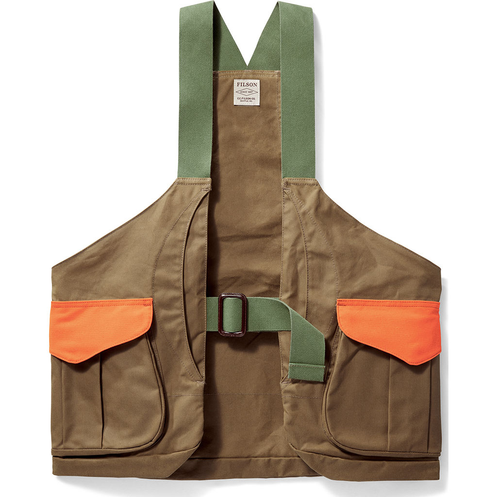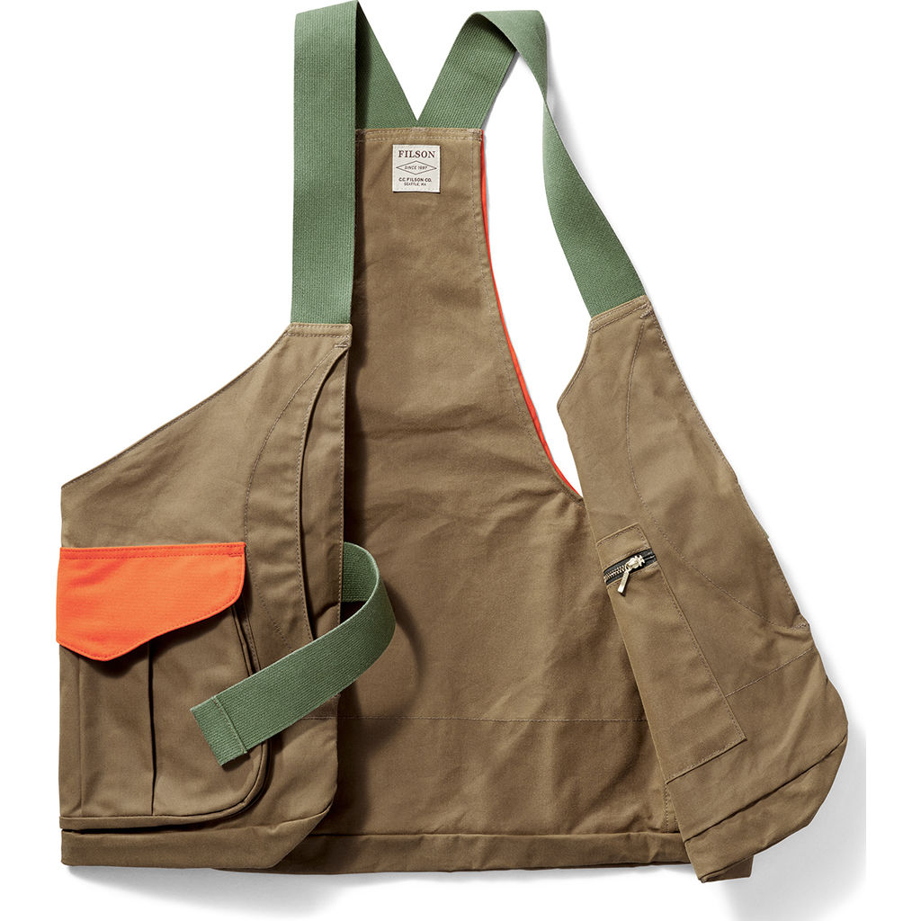 The Filson Shelter Cloth Strap Vest in Tan has a range of features suited perfectly for a hunter's adventure. The vest features multiple pockets for holding tools and accessories. Filson has designed a vest that is perfect to perform on warm season hunts as well as be worn over layers during the snowy season. Made from 100% cotton oil finish shelter cloth that is durable and resilient, this vest will accompany you on hunting excursions for years.