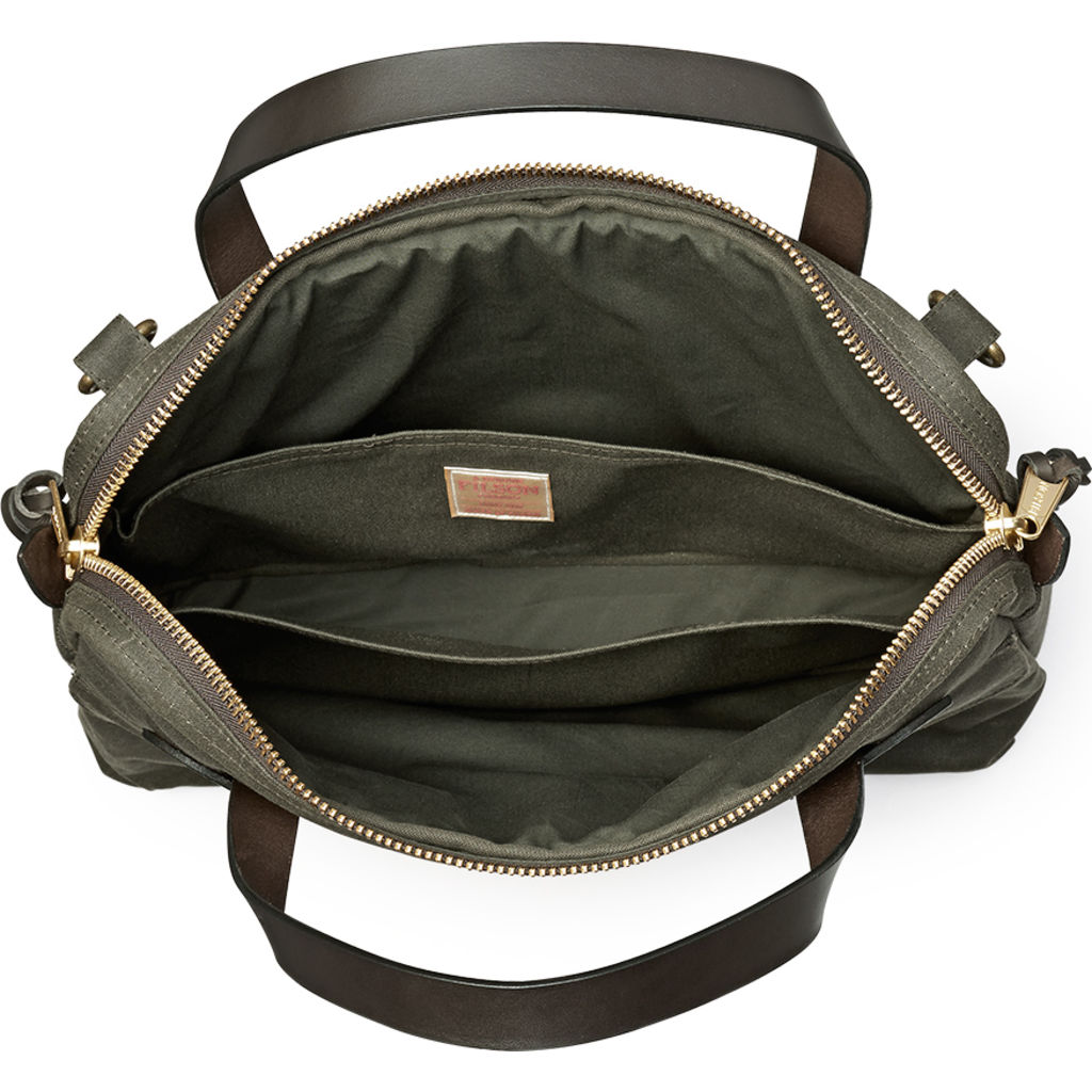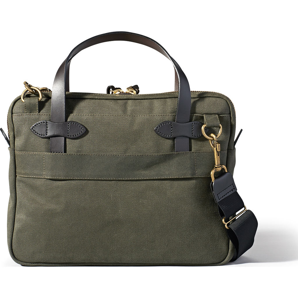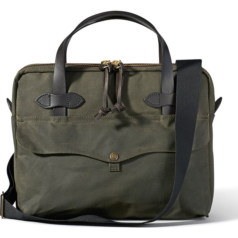 Carry your tablet everywhere you go with the Otter Green Filson Tablet Briefcase. It offers versatility in a beautifully constructed package. Keeping your device safe and dry, this Filson Briefcase in a tan rugged twill holds any size tablet with room to spare for accessories and the power cord. Thanks to water-repellent fabric, the content of the briefcase stays dry even in rainy weather and with bridle leather handle and nylon shoulder strap it wears comfortably as long as you need it to.