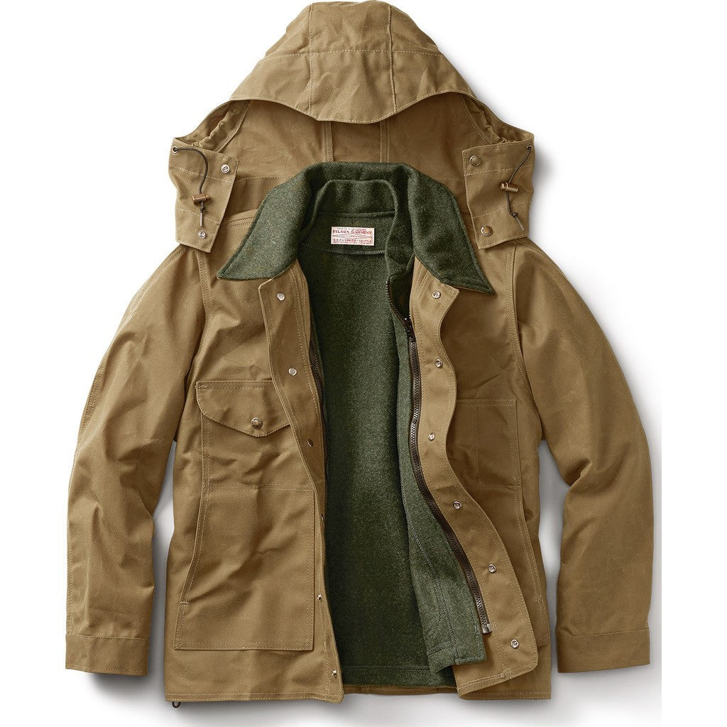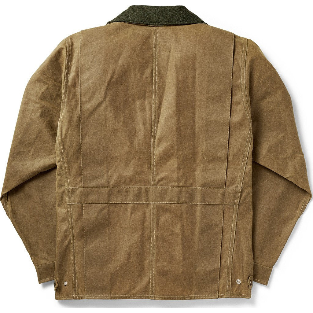 Filson's Tin Jacket in dark tan is a durable, water-resistant jacket that's perfect for working in or wearing while you're on the move. With a design that allows for a full range of motion through the back and shoulders, adjustable waist and cuffs, and wool-lined collar, this jacket is versatile and functional without sacrificing comfort or style.