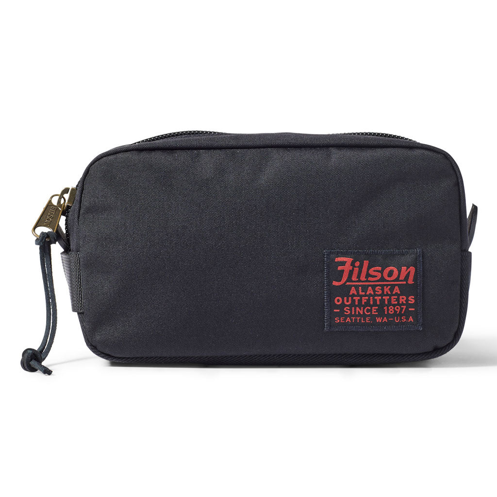 A must have addition to your holiday packing essentials, Filson Travel Pack has been crafted from durable, tear-resistant nylon and reinforced with Filson signature Rugged Twill across the base to offer a secure and durable bag that is built to last. Perfect for your toiletries or personal essentials, this pack features one exterior pocket and two interior stow pockets to keep your items organized and close to hand. The bag is fastened with a zip and can be carried by the strong webbing grab handle. This lightweight travel pack is finished with signature Filson branding for that final mark of quality excellence.