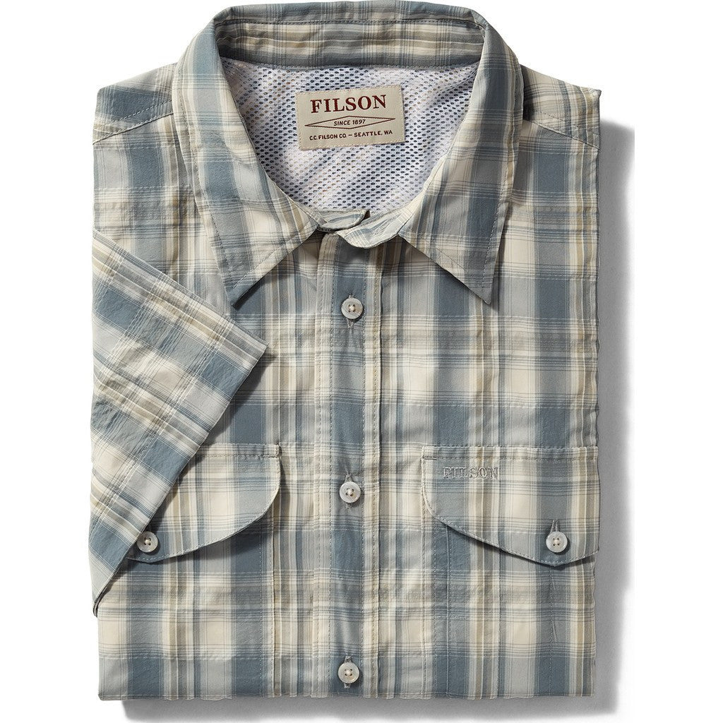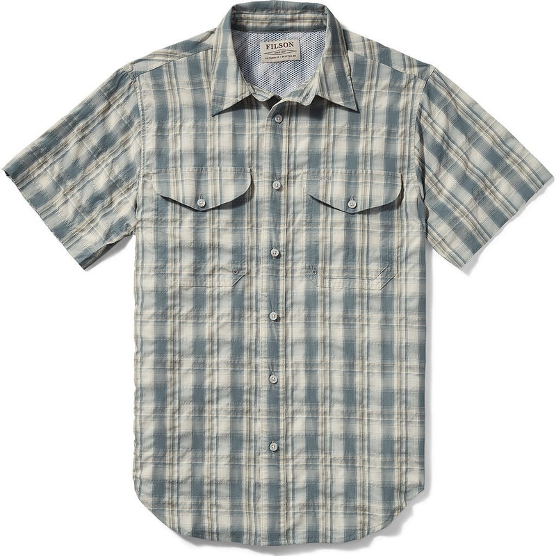 Filson's Twin Lakes Short Sleeve Sport Shirt in blue/white moss plaid features an iconic silhouette that is perfect for those days spent in the sun or on the water. This shirt is crafted from moisture-wicking material that has a mesh back panel that helps with ventilation, and regulates body temperature.