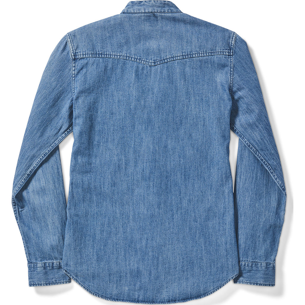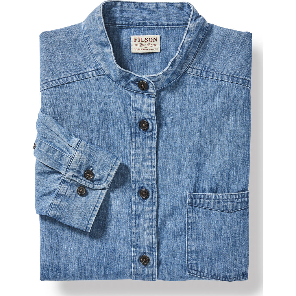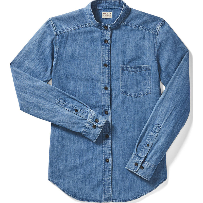 Made to work as hard as you, Filson's Women’s Denim Shirt is made of sturdy 6.5-oz. denim twill. Outfitted with a banded collar and tailored fit for comfort. Designed with clean lines for a simple look that can be worn out.