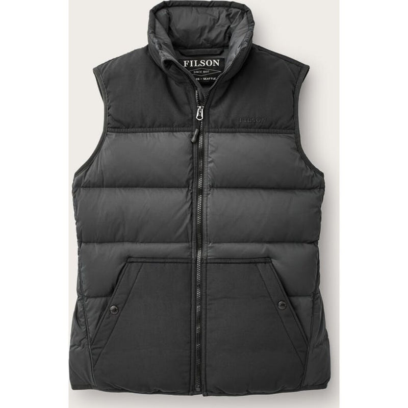 Insulated with traceable, ethically-sourced goose down inside a ripstop shell with water-resistant shoulders and pocket paneling - the Filson Women's Featherweight Down Vest provides ultralight warmth that packs small. Cut specifically for a woman, it features an interior zippered hanging pocket, Moleskin-lined handwarmer pockets, and a zipper garage.