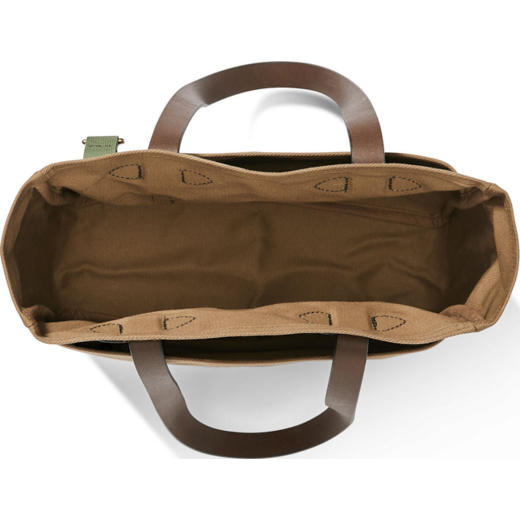 Our Tote Bag is made from water-repellent, abrasion-resistant Rugged Twill for durability and weather resistance. A roomy interior holds bulky items, and four exterior pockets store small essentials. Topped off with our signature Bridle Leather handles.