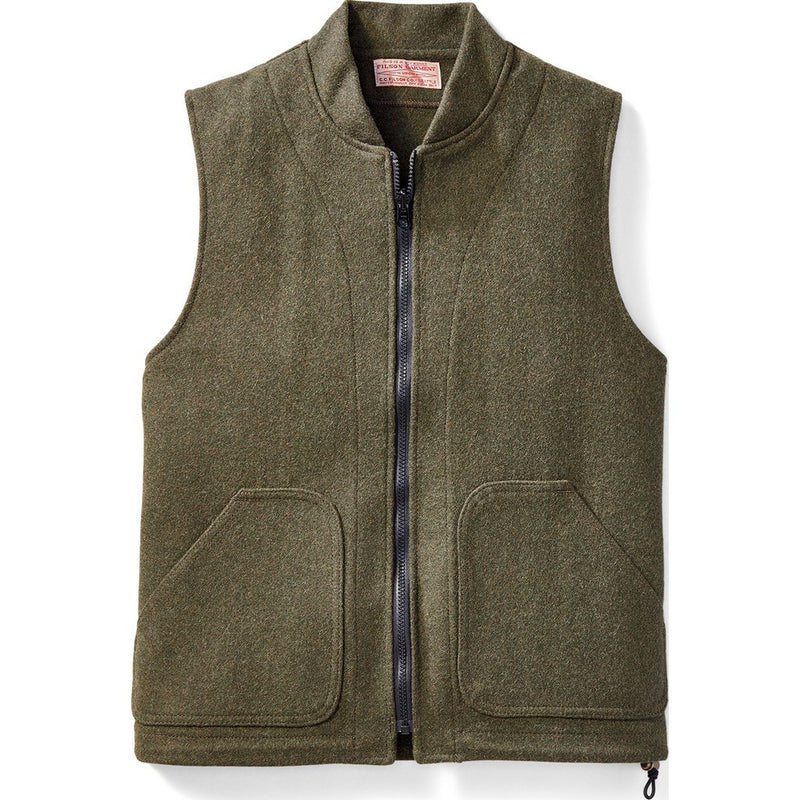 Filson's versatile warm Wool Vest Liner can be worn alone or zipped into your favorite Filson jacket. Crafted from 100% virgin wool, this vest is breathable and moisture-wicking, to keep you comfortable no matter the season. A standing collar, handwarming pockets, and a drawcord adjustable waist provide added warmth.
