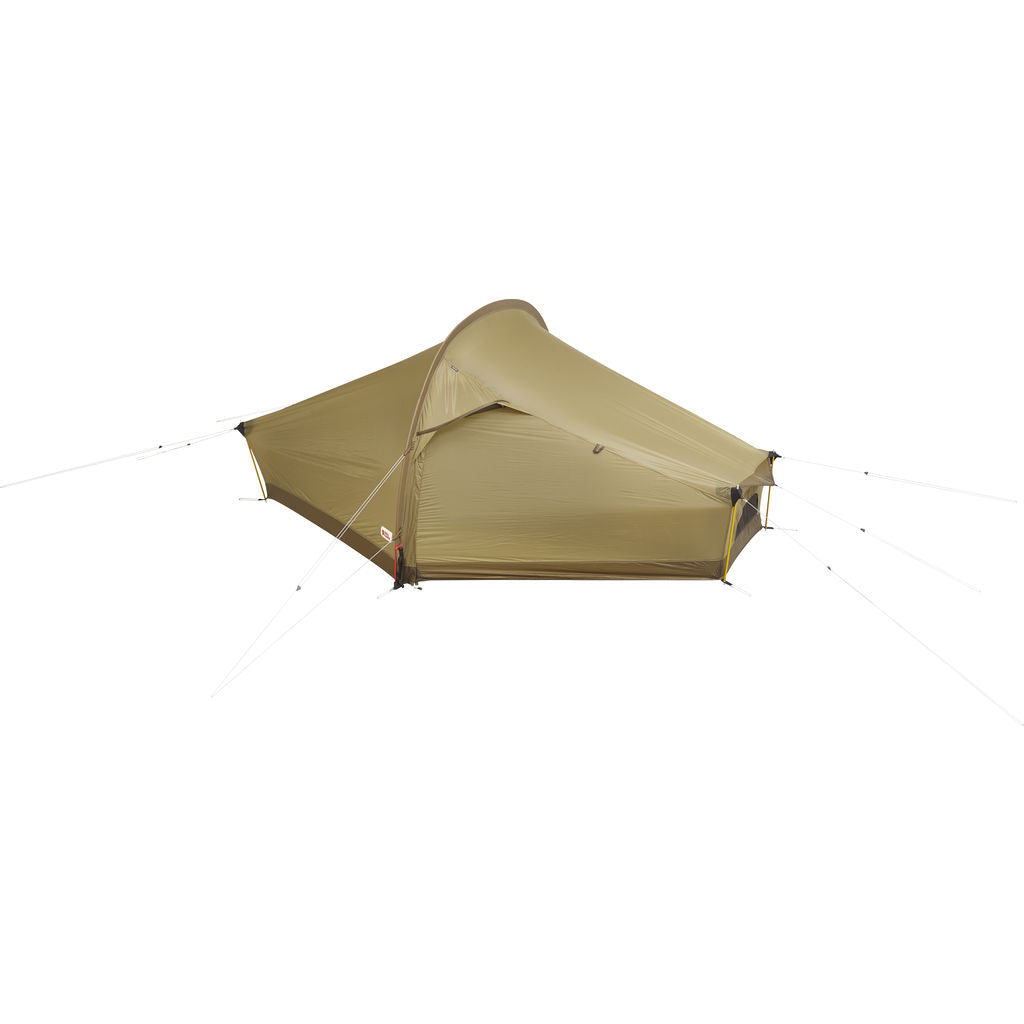 The Fjallraven Abisko Lite 1-Person Tent in Sand is compact and stable tunnel tent for solo trekkers who like to travel with a smaller backpack. One main pole and strong corner poles in aluminum give generous head height and space over the feet. A comfortable, reliable and lightweight trekking companion when you want to travel alone. The ventilation in the Abisko is excellent with three openings, positioned both high and low, which can be completely closed if needed. For really good airflow in warm conditions, the flysheet door can be rolled up to half way and fastened in place with an auto-lock that won’t let the zipper “creep” in strong winds. All openings, including the inner tent door, are covered in a fine mesh that keeps out even the smallest, barely visible insects.