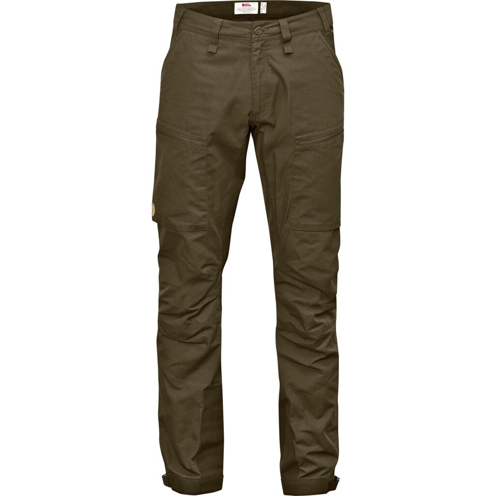 Lightweight, cool outdoor trousers for trekking in warm conditions. Made from durable four-way stretch fabric and lightweight, strong G-1000 Lite, giving a pliant, fast-drying garment with excellent ventilation. Perfect for hot days when you want to wear full-length trousers for protection against brush and biting insects out in the terrain. They have a technical cut with pre-shaped knees, which in combination with the stretch fabric gives well-fitting trousers that let you comfortably take full-length strides. Long ventilation zippers from the hips to the knees release excess heat. There are two hand pockets as well as spacious leg pockets with zippers for a map or the like. The leg endings have strap adjustments and boothooks that prevent them from riding up. Reinforcements at the leg endings and on the inside of the calves make them extra resistant to wear.
