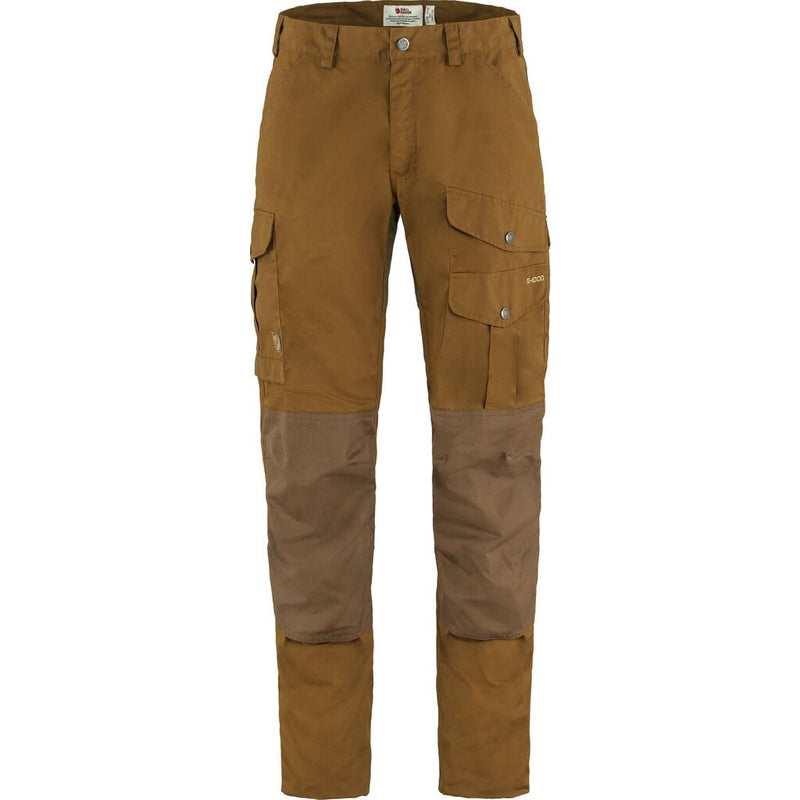 Durable trekking trousers for adventures in the mountains and forest. Made using durable wind and water-resistant G-1000® fabric with a double layer over the rear and knees. Regular waist (mid waist) and regular fit with pre-shaped knees. Six practical pockets including a map pocket and an axe pocket. Equipped with knee pad pockets (an accessory). Raw-length leg endings that can be easily adapted for your own height.