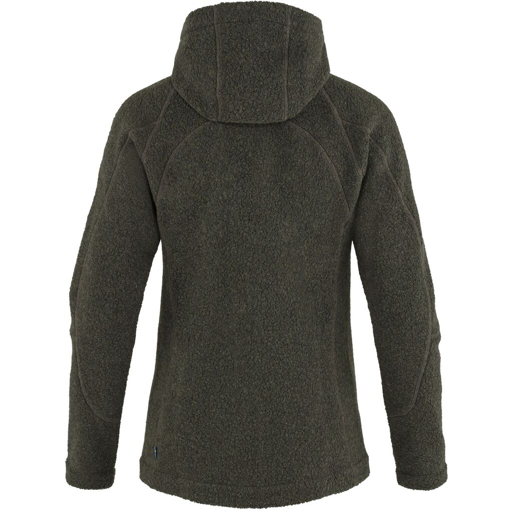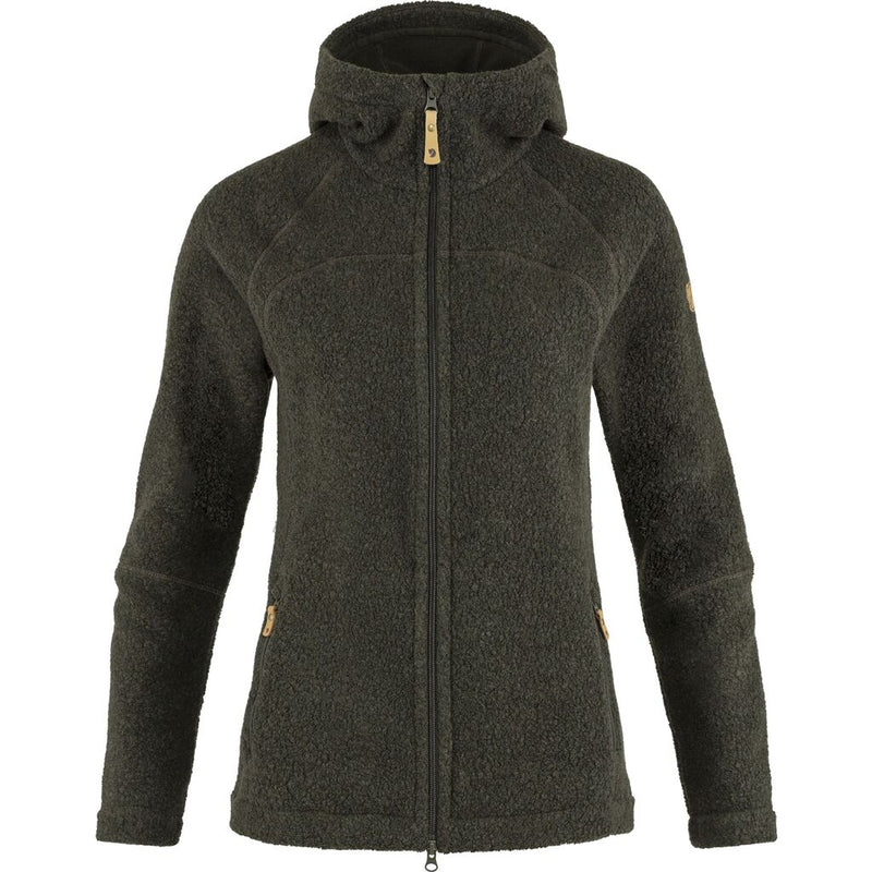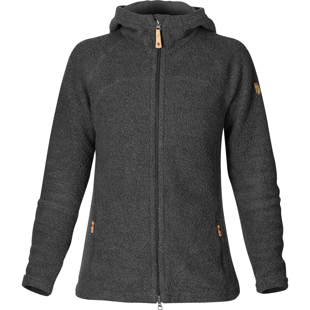 Comfortable fleece with snug hood and rippled surface. Made from a functional wool blend that combines the temperature-regulating properties of wool with the durability of polyester. Can be worn both as a warm, moisture-wicking middle layer under a shell jacket and when relaxing after a trek. Snug hood with microfleece lining that is soft against the cheek. Full-length zipper in the front with protective flap at the chin. Two zippered side pockets. Attractive women's cut with comfort fit.