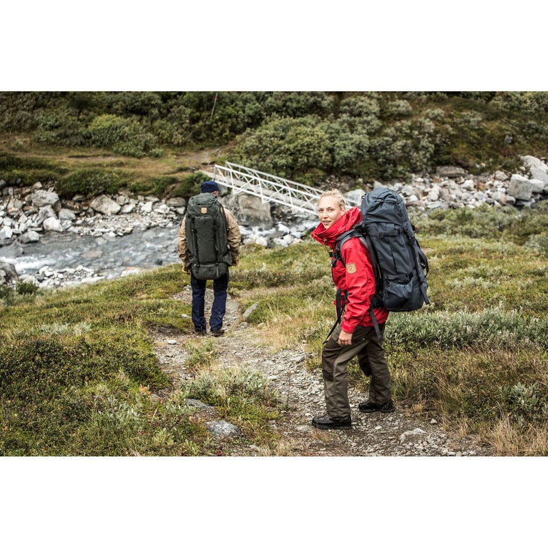 Durable, comfortable and loaded with functions – despite its fairly modest appearance, Kajka is an advanced trekking backpack in the classic Fjällräven spirit. Now upgraded with fine-tuned and improved functions and an innovative, one-of-a-kind wooden frame that impacts the environment considerably less than previously while maintaining its strength and functionality. The support system is designed for female anatomy with ergonomically shaped shoulder straps, and it distributes even extremely heavy loads. The user-friendly Perfect Fit Adjustment System can be easily fitted to the length of the user's back and shoulder width. The hip belt is specially shaped to fit the female form and offers a high degree of carrying comfort on long trekking days. The main compartment is loaded from the top and has a snow lock. It also has a large vertical opening in the front and another one at the bottom to help the user get an easy overview of the contents. It can be divided into an upper and lower section. The lower section has Wet/Dry compartments to keep damp and dirty equipment from the rest of your things.