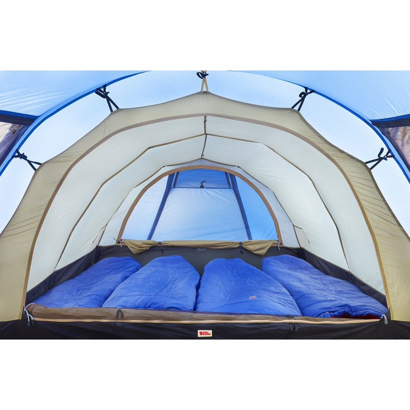 Fjallraven builds finely-crafted outdoor and lifestyle equipment. The Keb Endurance 4-Person Tent in UN Blue is designed with the strongest materials to resist the most difficult of conditions, from the dead of winter to extreme heat. Crafted to make the assembly as simple as possible without sacrificing any of the necessary durability, this tent provides a suite of features including reflectors to make it easy to identify, ventilation for added comfort and mosquito netting to keep critters out. Spaciously designed for four people and providing ample seating height, it's great for socializing and conversation. Made with two fabric weights, 40 denier on top and 70 denier at the bottom as a reinforcement, the exceptional strength of this tent combined with easy usability and portability make it a fantastic choice for any camping enthusiast.
