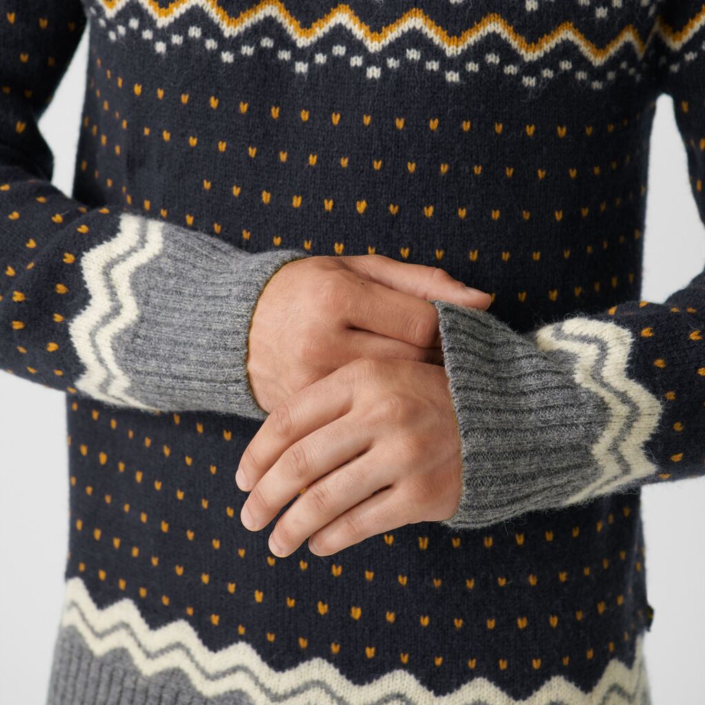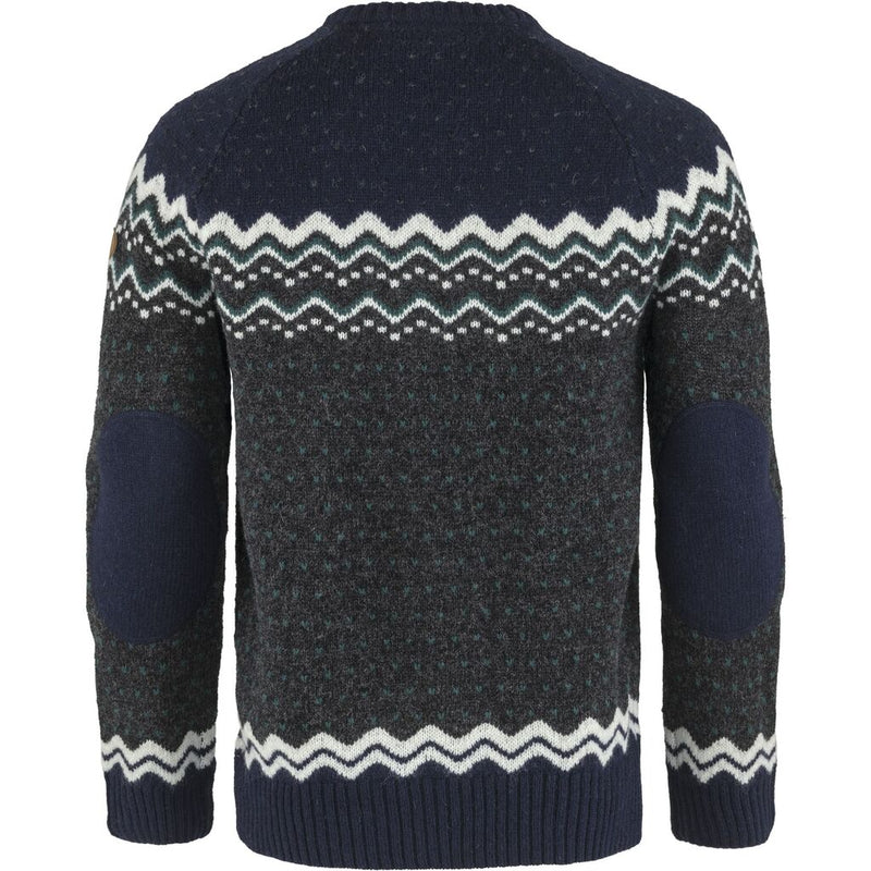 Comfortable sweater in soft, warm wool for everyday use and relaxed outdoor life. A beautiful patterned garment that also has excellent functionality as wool wicks away moisture from base layer garments and is one of few fibres that warms even when damp. Perfect as an insulating middle layer under a shell jacket, or together with a down vest, for example, on warmer days. Round neck and raglan sleeves with reinforced elbows. Ribbed edging at sleeve cuffs and hem.