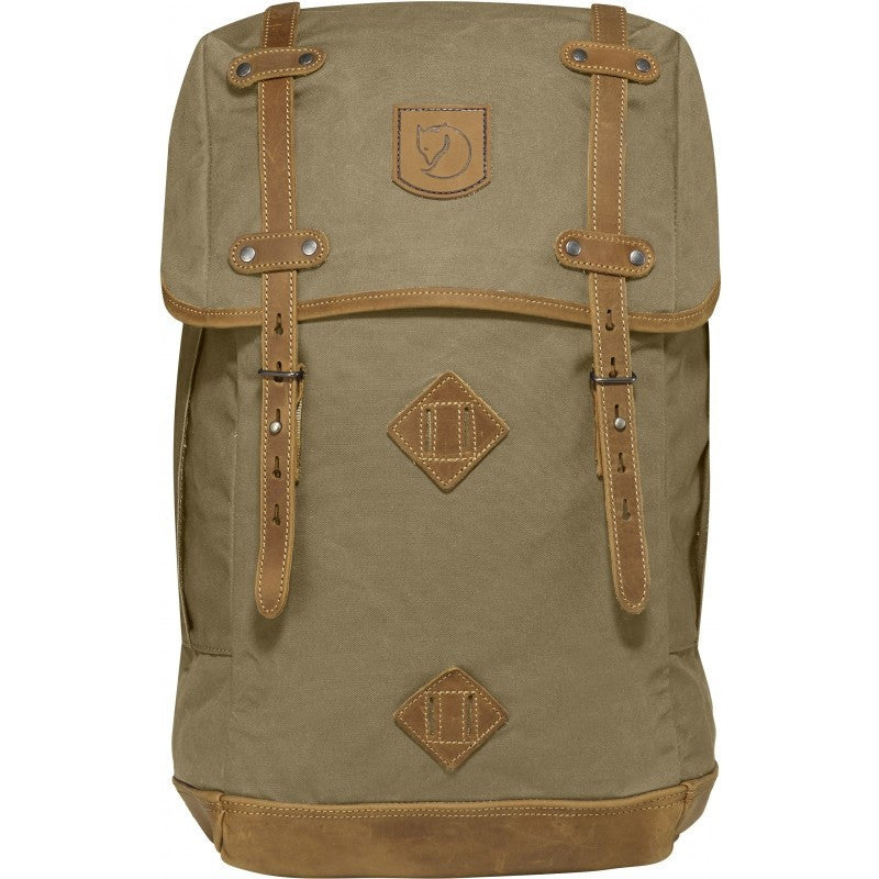 This large version of the Rucksack No.21 backpack is built in classic Fjällräven style, made from a more durable version of their waxed G-1000. Use it daily around town or take it to the forest for the weekend. The main compartment loads from the top, is equipped with a snow lock, and has an inner pocket with a padded bottom to hold a laptop.