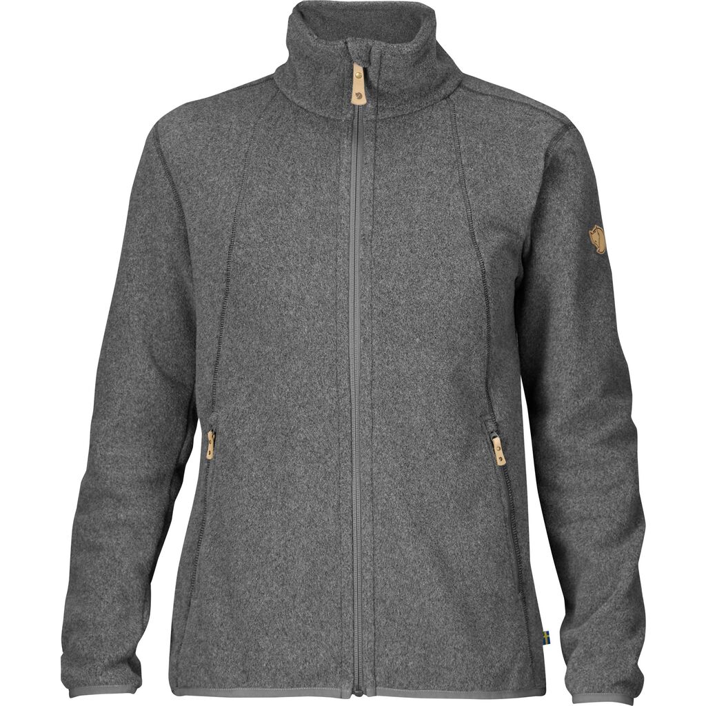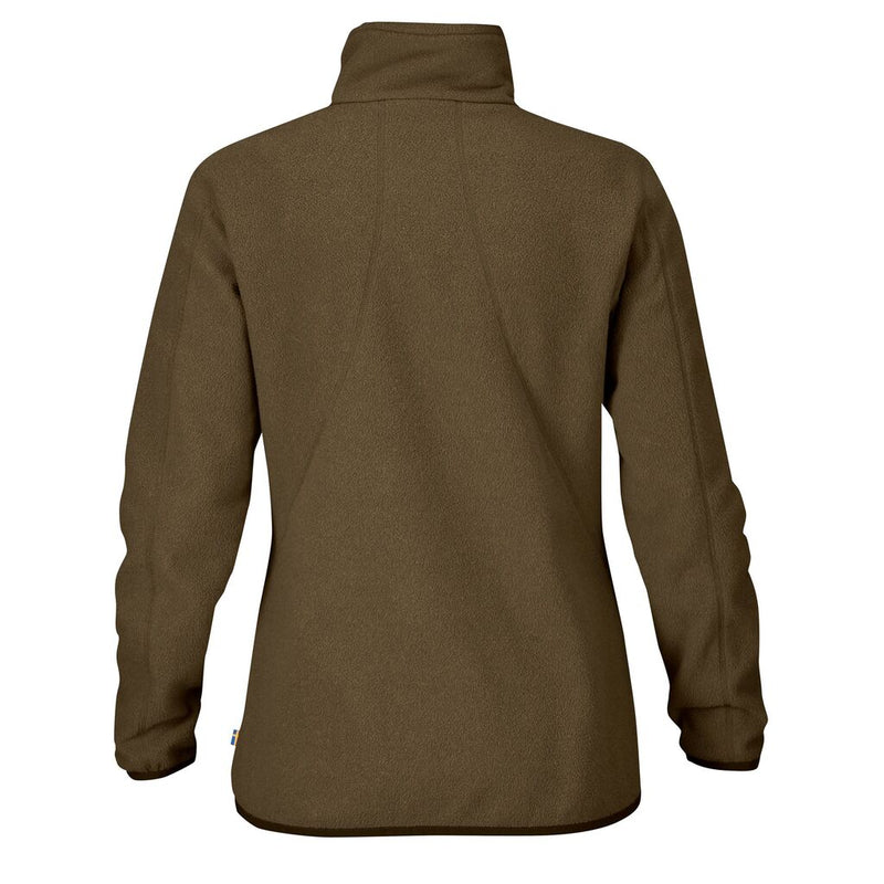 Comfortable and soft fleece sweater with comfort fit; made from recycled polyester with a slightly marbled look. As appropriate on a mountain hike as it is when worn as a warm middle layer under a shell jacket or by itself over a shirt as the dew falls on a nice summer evening. The fleece is manufactured in an environmentally friendly process that both spins and dyes the thread in the same step. For this model, that means about 50 percent less water and 31 percent less energy consumption compared to a traditionally produced fleece sweater. High collar protects you from biting winds, and there is a protective flap of fleece between the zipper and chin. Two spacious zippered side pockets. All of the zipper flaps are made from natural tone leather.