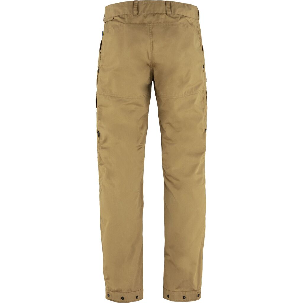 Durable trekking trousers with technical features, made from wind and water resistant G-1000 Eco. The model is based on our best-selling Vidda Pro but has improved ventilation options and a new, slightly slimmer fit that still has great freedom of movement. The buttoned strap adjustments at the leg endings can be removed and there are numerous practical pockets and details – such as a knife pocket on the right-hand leg and a loop for an axe on the side of the waist.