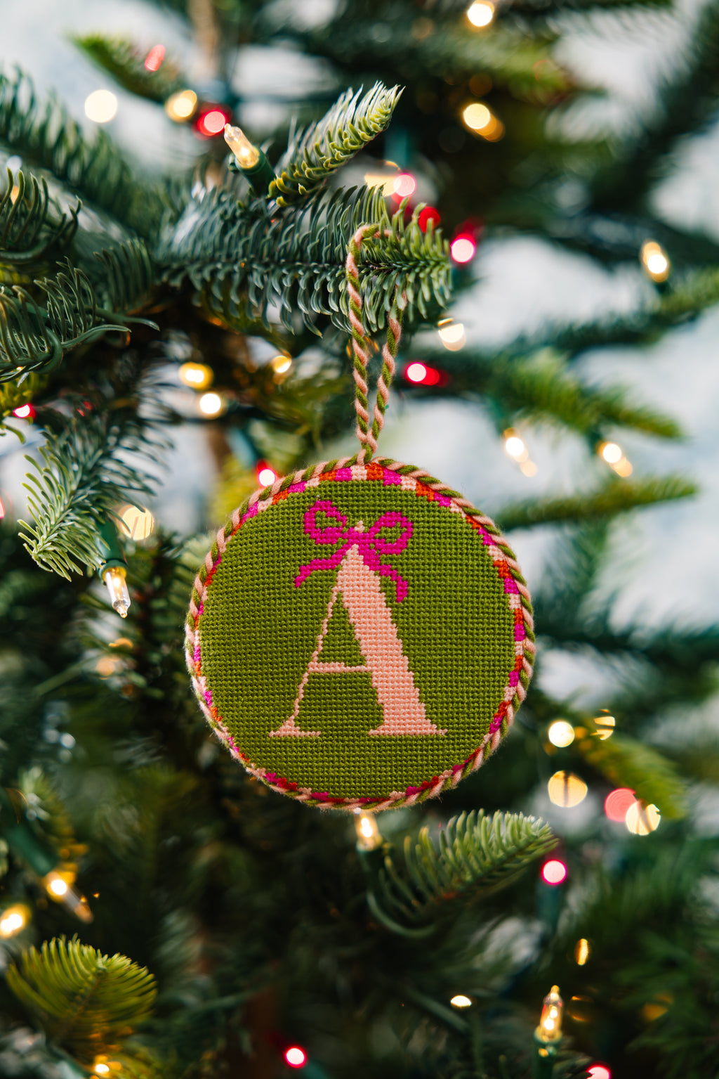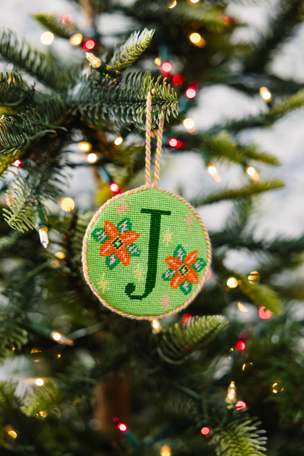 - Hand-stitched needlepoint design