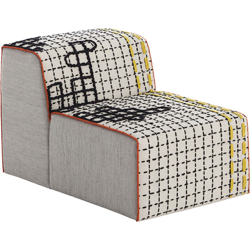 The Bandas Module collection from GAN offers complete control and freedom to arrange your furniture in any way you'd like. A versatile modular starting point; the White Chair D can be paired with any of the Bandas Pouf Ottomans or Chaiselongues to create a contemporary living space that reflects your personality. This compact chair's striking geometric design and 100% wool upholstery add a level of elegance only GAN can offer.