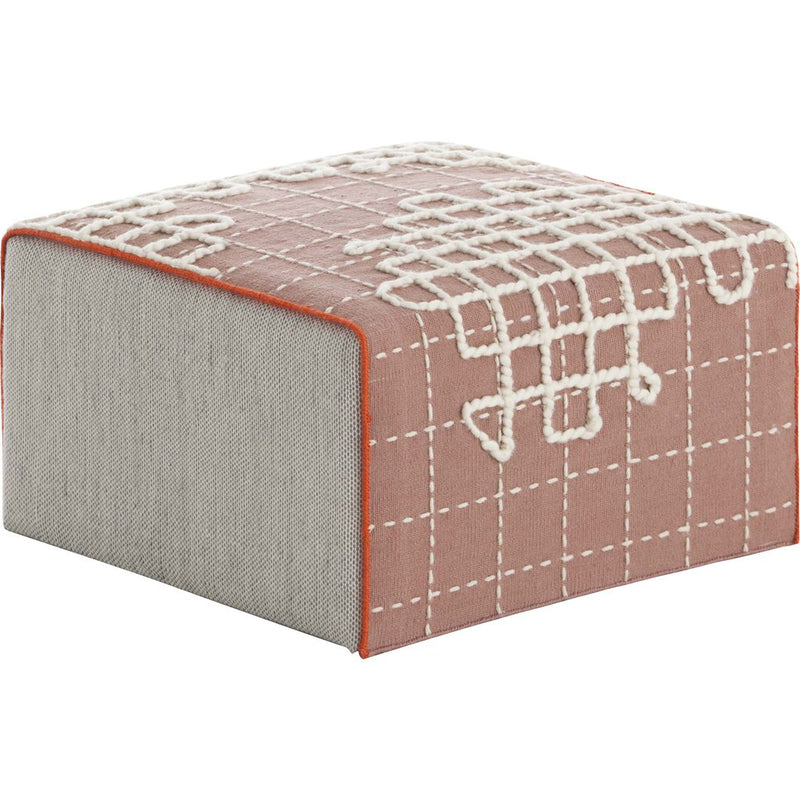 Upholstered in 100% natural wool, the Small Bandas Pouf A is a striking contemporary ottoman for taking a load off or putting your feet up! This modern, handcrafted design utilizes a soft pink and gray color contrast with geometric forms to create an aesthetic that is uniquely GAN. Working tirelessly to improve the lives of Indian women and children, GAN maintains a strict commitment to developing local communities where their operations are present.