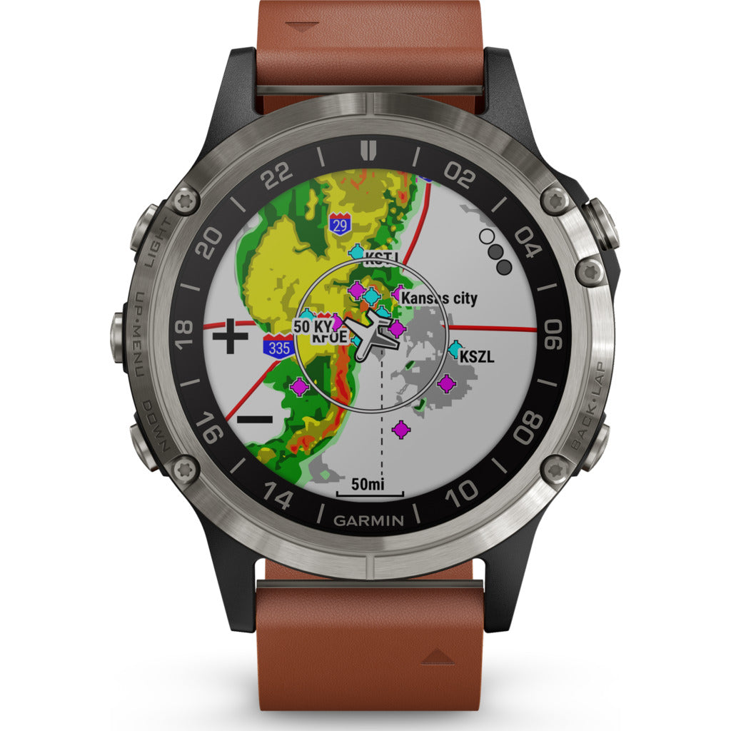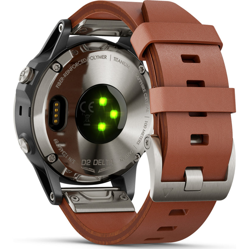 - INCLUDES: D2 Delta, brown leather band, black silicone band, USB cable, trial subscription of Garmin Pilot app, documentation