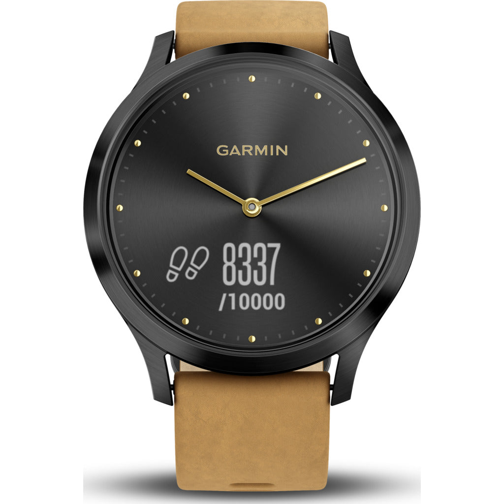 Garmin Vivomove HR Premium Activity Tracking Watch | Onyx Black/Stainless Steel/Tan Suede