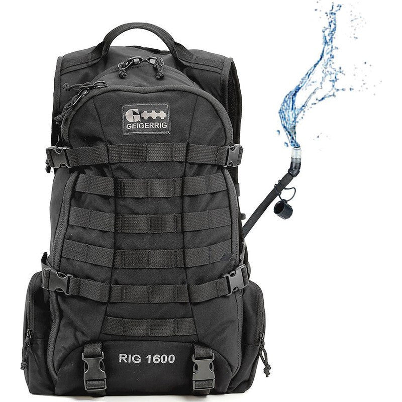 The Tactical Geigerrig 1600 is a state of the art hydration system backpack that can transport fresh drinking water anywhere you go. Whether exploring, exercising, or traveling, this water backpack is perfect for keeping you hydrated and cool. With a 100 oz-(3L) of water storage and pressurization tube for easy refill, you won't have to worry about not bringing enough. The shoulder and chest compression straps will keep the black tactical hydration pack securely in place while the two large stowage compartments carry all of your essentials. Like other Geigerrig hydration systems, the Rig 1210 can be fitted with an in-line filter so you can refill the bladder from a lake, river, pond, etc.