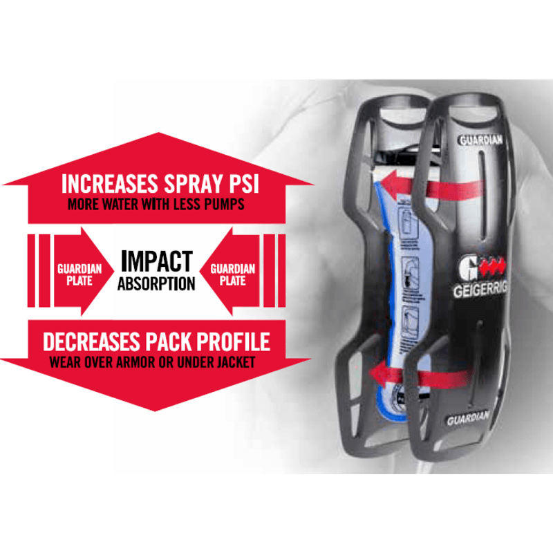 The Rig Guardian Hydration Pack is a low-profile pressurized personal water system that allows the wearer to increase their PSI per usage. Featuring 70 oz-(2L) of water storage, quick attach molle straps, impact absorbing shield, and being easily attachable to other packs or body armor, the Tactical Guardian is ready for whatever your adventure entails. Like other Geigerrig hydration systems, The Rig Guardian black can be fitted with an in-line filter so you can refill the bladder from a lake, river, pond, etc.