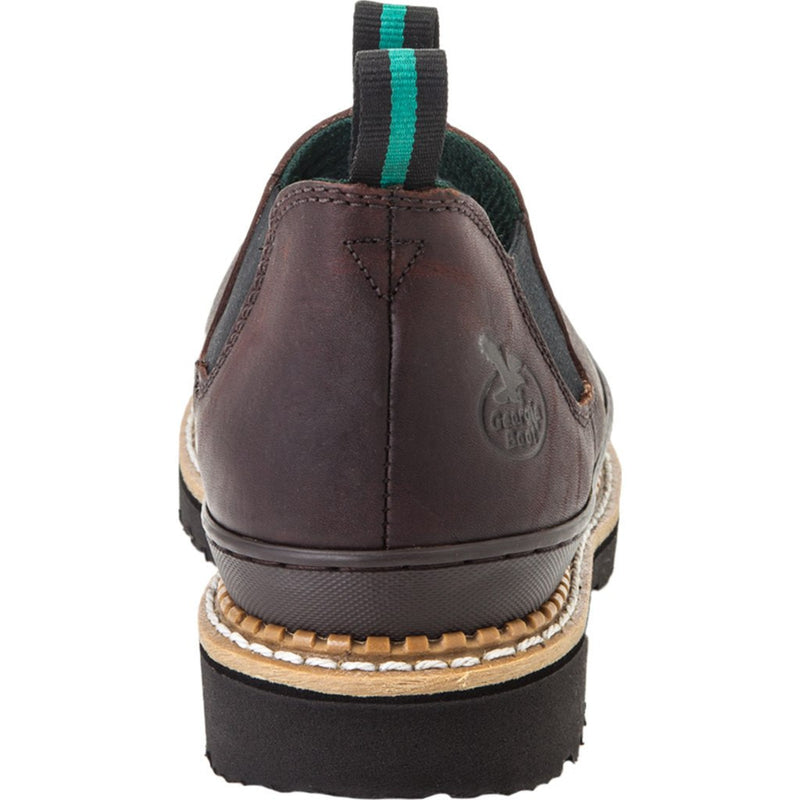 Comfort and performance blend to bring you the Giant Romeo Work Shoe by Georgia Boot. These slip on shoes are made with full grain leather and a high performance lining to ensure you feet are protected and dry. The bumper guard near the toe helps to avoid scratches and abrasion. To ensure comfort Georgia Boot has a stretchable gore on either side of the shoe, along with a mesh-covered cushion insole. Goodyear welt construction gives these shoes an added level of durability and the ability to be easily repaired.