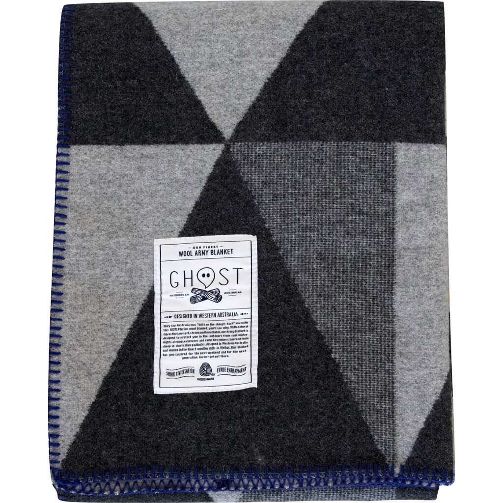 Army blankets are a must-have item for the minimalist camper - helping you survive the cold, breeze, heat and sun. The 'Bush Geo' is an original Ghost Outdoors AUS design inspired by the rigid, mechanical forms of Australian native flora. Woolmark® certified Australian Merino Wool because it is the softest and strongest wool available. Other wool in this thick weight would be scratchy, but this blanket is both cuddly and durable. Throw it in the car for instant bedding, picnic, shade or privacy.