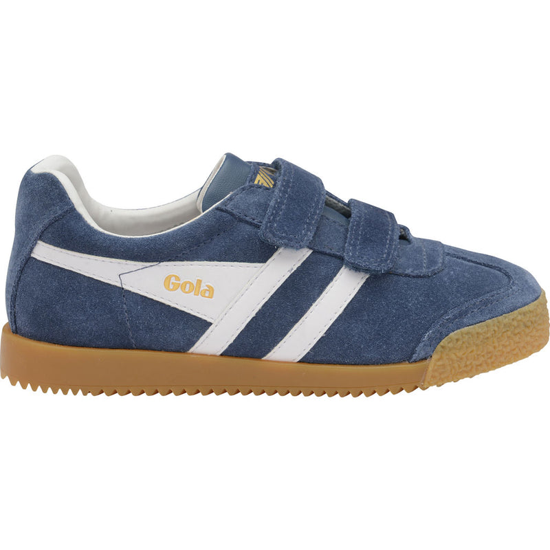 Originally crafted in 1968, the Harrier Trainers were designed for a wide range of sports and general training. The Baltic Blue Velcro Harriers are a small scale reimagination of these iconic sneakers in a kid-friendly package. These young boy's shoes feature a suede upper and color contrast wing flash, making them a fun, vintage footwear option for your little one.