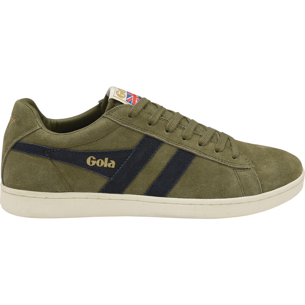 Gola Equipe Suede takes its inspiration from terrace styling of the ‘70s, when Gola was associated with some of the biggest names in football, including Liverpool FC and Manchester United. This men’s trainer style features a cup sole, gold Gola branding highlights and an all suede wingflash and heel return. This navy with ash colourway provides a versatile footwear choice for the season.