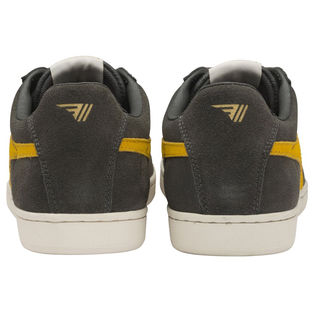 Gola Equipe Suede takes its inspiration from terrace styling of the '70s, when Gola was associated with some of the biggest names in football, including Liverpool FC and Manchester United. This men's trainer style features a cup sole, gold Gola branding highlights and an all suede wingflash and heel return. This ash with sun colorway provides a versatile footwear choice for the season.