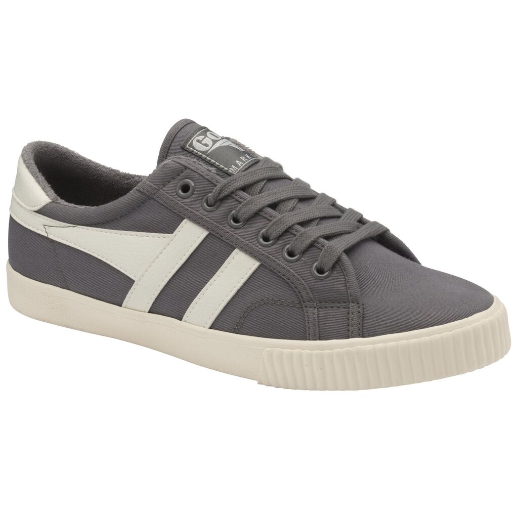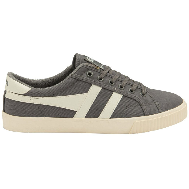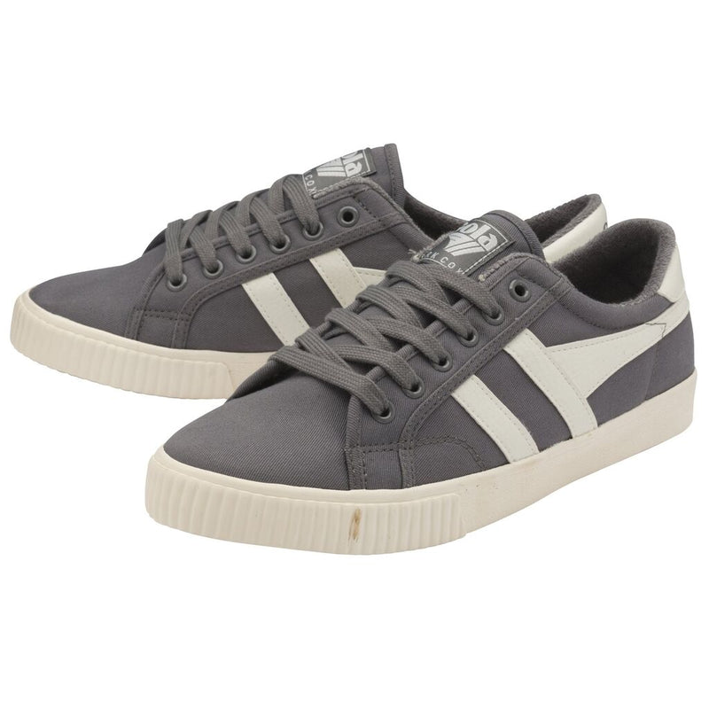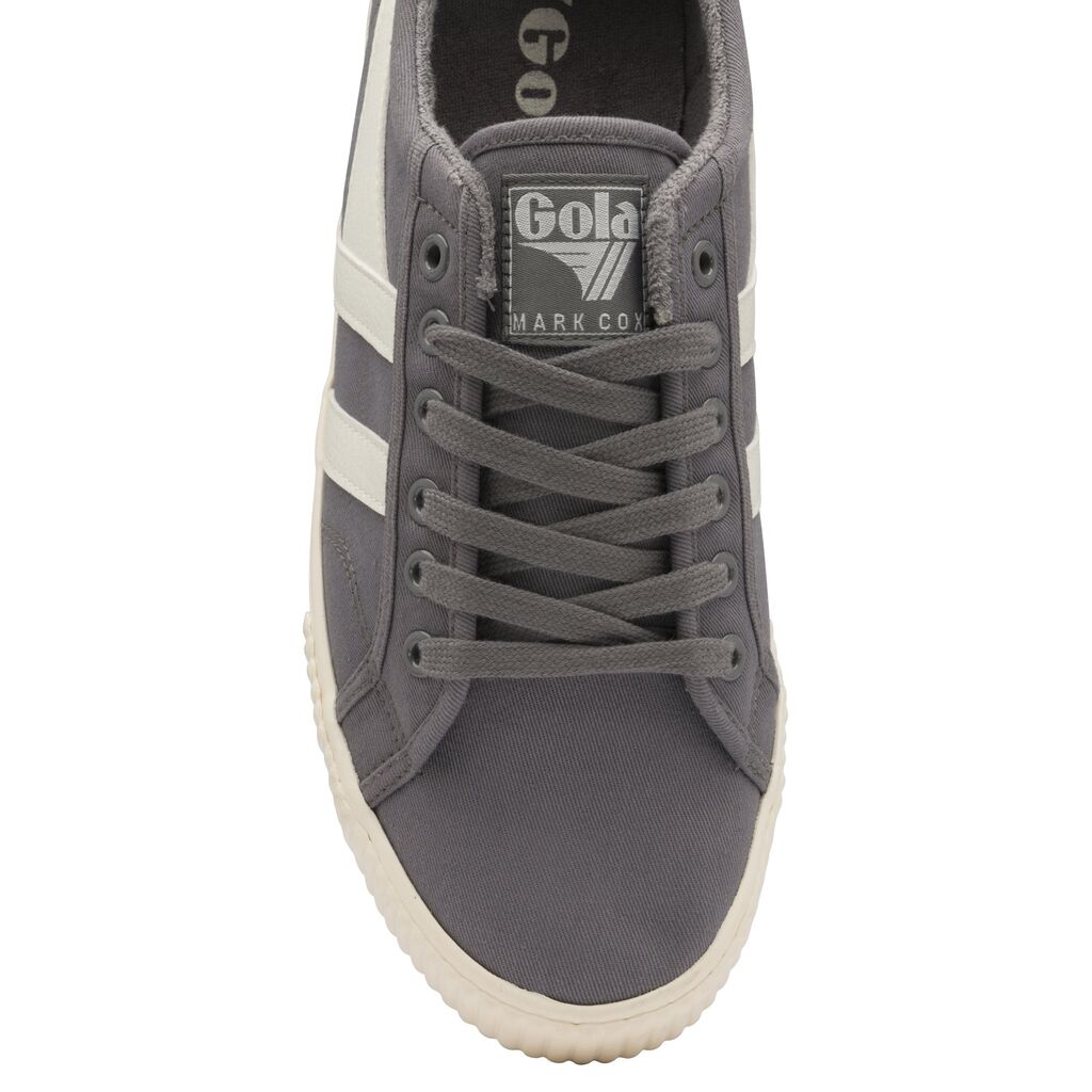 Gola Classics introduces Tennis – Mark Cox. Based on an original Gola style from 1975 that was worn by tennis player Mark Cox, Tennis truly embraces Gola's long history with racquet sports. This men's tennis inspired plimsoll features a ash upper, with a contrasting off white wingflash. Gola branding can be seen on the tongue and heel-turn.