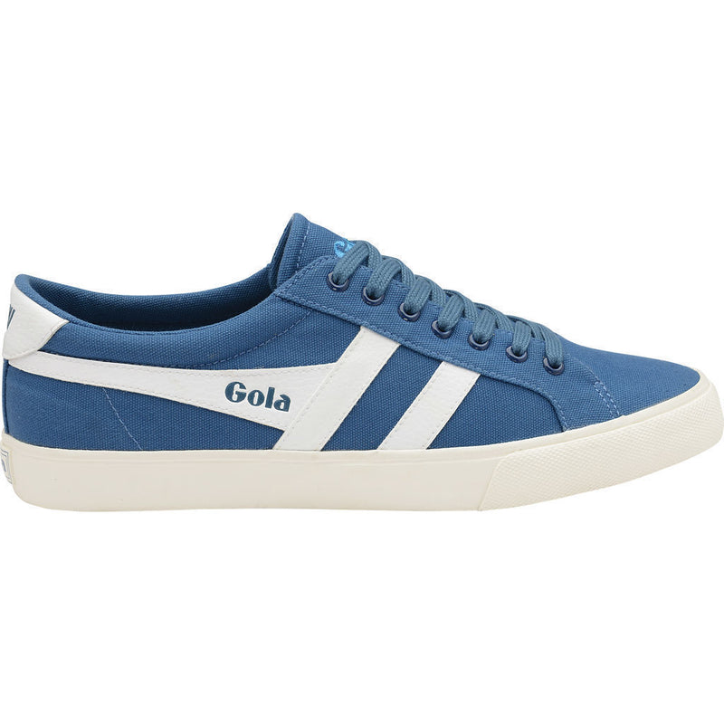 The blue & white Varsity Men's Sneakers are a classic lace-up plimsoll. These trainers feature a canvas upper and tonal contrasting wingflash. This stylish shoe is complete with subtle blue branding - a timeless Goal finishing touch. The Varsity Shoes boast a relaxed style that pairs perfectly with a pair of jeans.