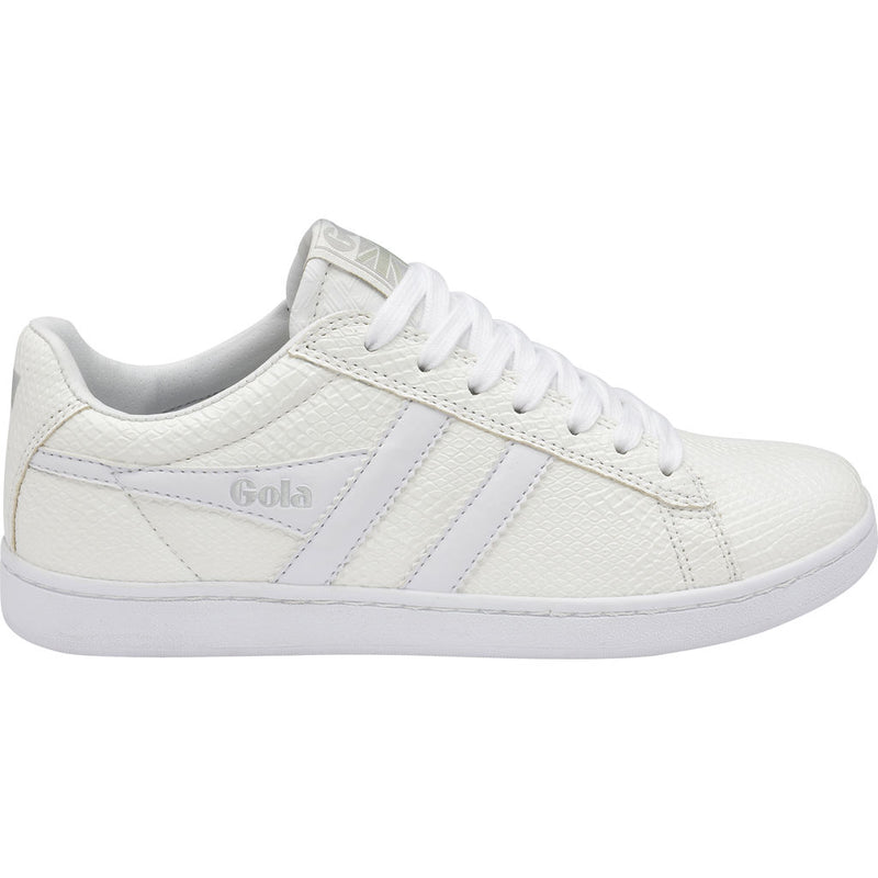 Gola's Women's Equipe Reptile Sneakers in white are the perfect comfortable everyday shoe. This timeless style has been brought back for a new generation to enjoy. You can wear these retro cool trainers with casual outfits. The unique snake skin design will make a statement. Featuring the Gola logo, the final stamp of approval.