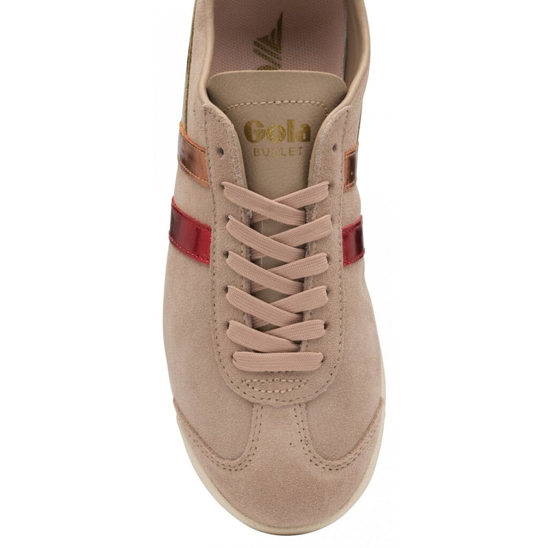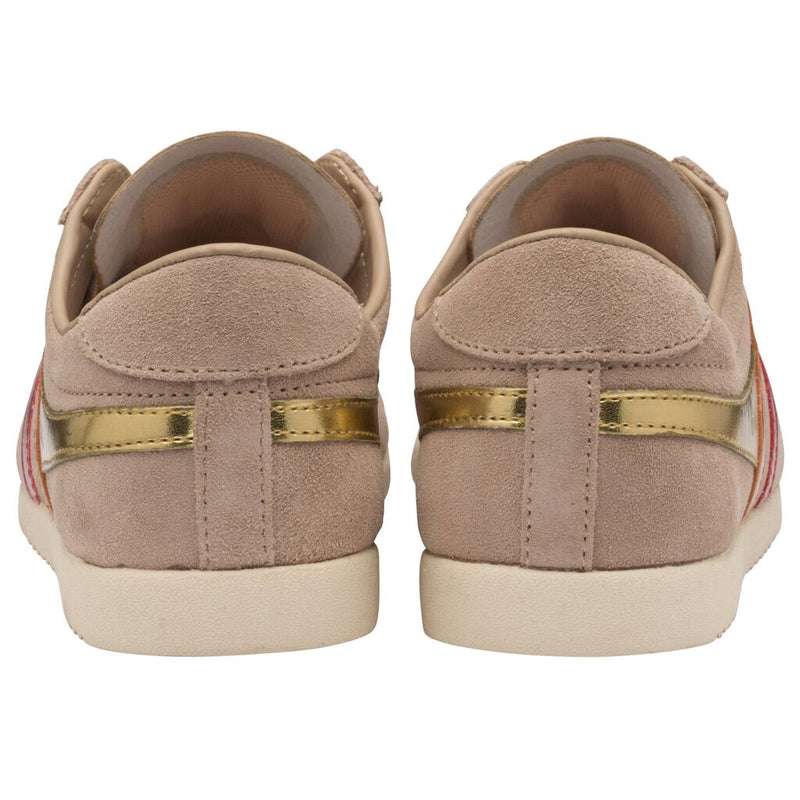 Gola Classics originally launched the Bullet trainer in 1976, from there this women's trainer has had numerous updates and color combinations. This women's Bullet Flare is the latest incarnation for the Gola trainer, with a bright metallic trim contrasting the blush pink suede upper. A style for the bold, this Gola Classics women's trainer is on trend and will get you noticed for all the right reasons.