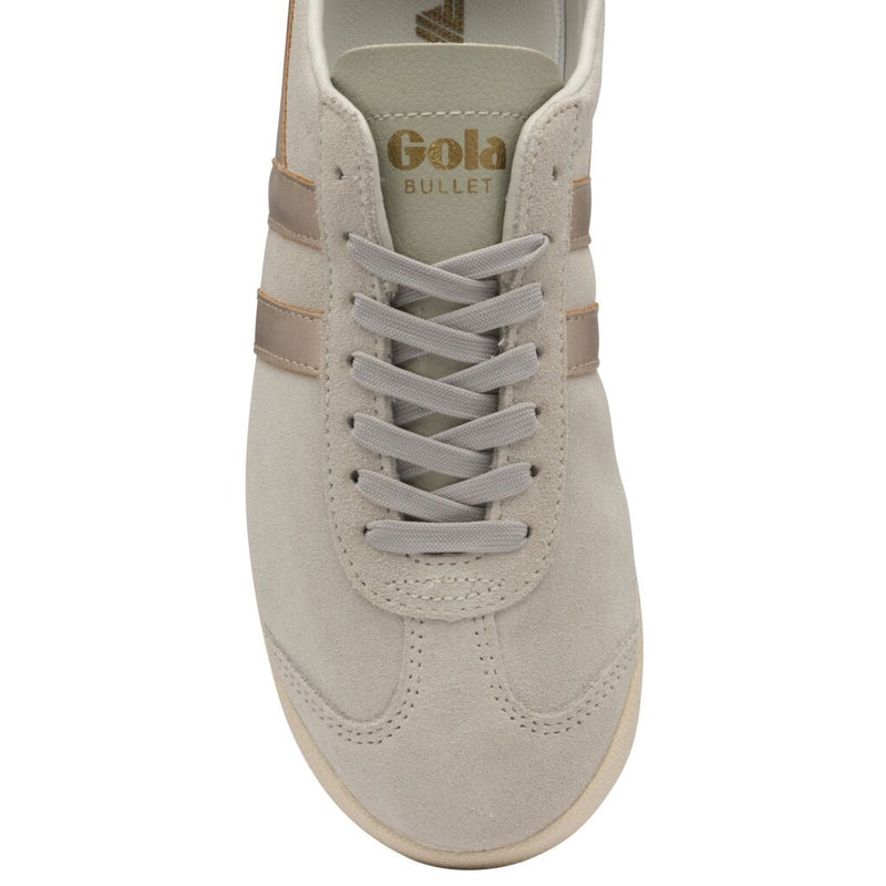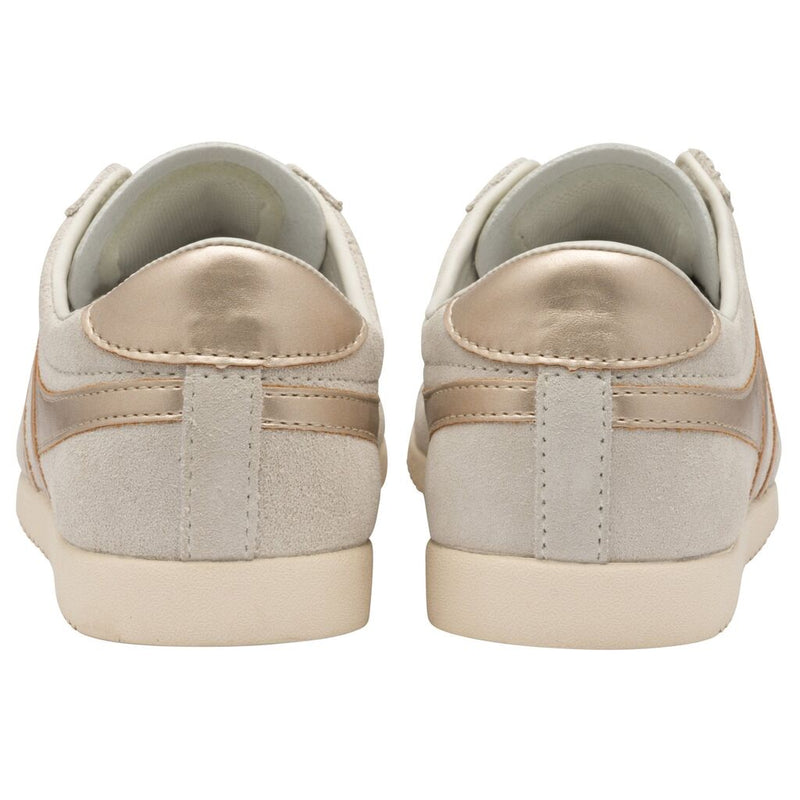 Gola Women's Bullet is a classic of the footwear world, and it has been given a new season update in the form of Bullet Pearl. Women's Bullet Pearl incorporates a off white suede upper, a contrast color pearlised heel tab and wingflash, and the iconic Gola branding to the side and tongue. This low-profile sleek style will add a stylish and feminine edge to any outfit.